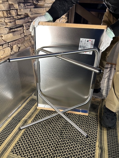 焚き火テーブルラージの収納時状態の内側に、焚き火テーブル(標準サイズ) が収納状態で収まります❗️
