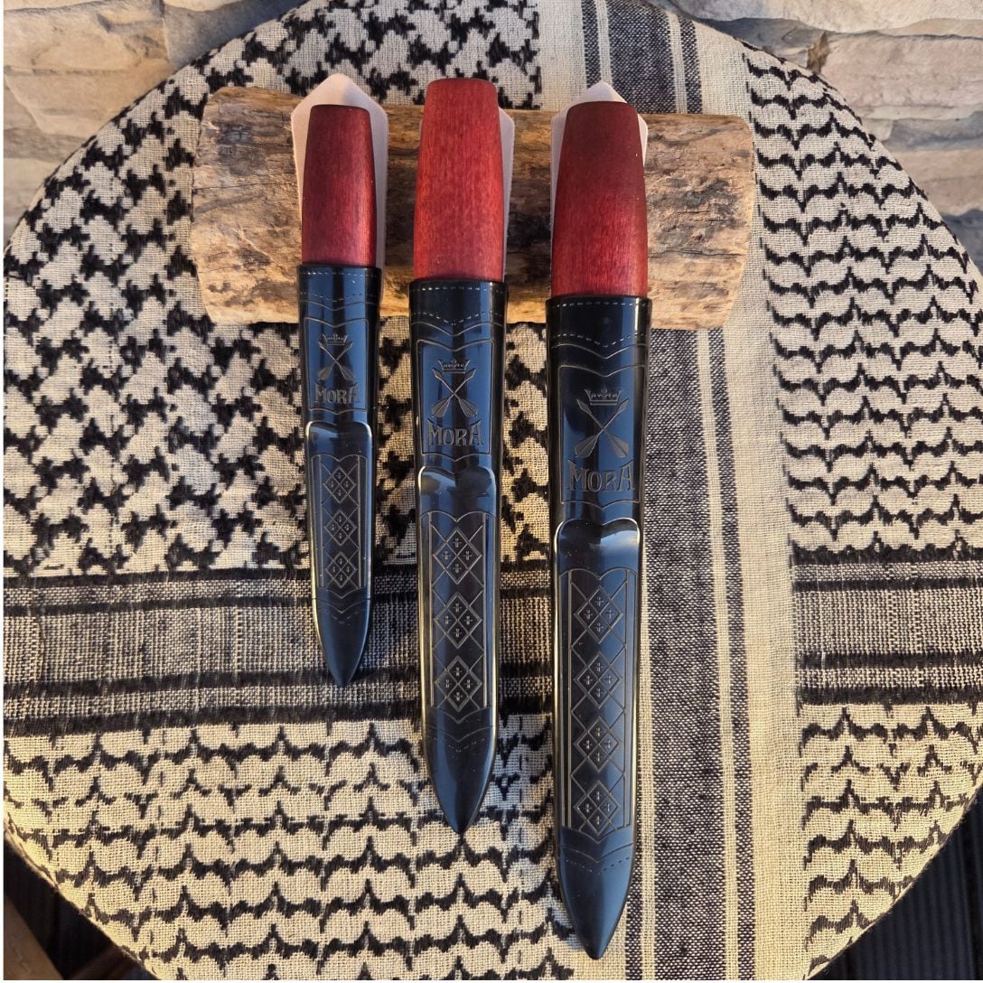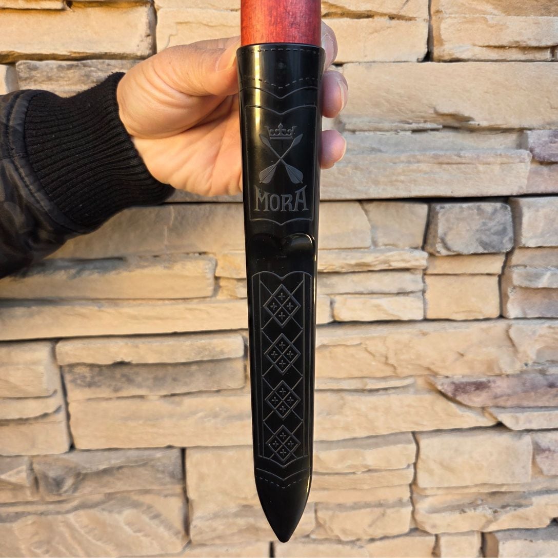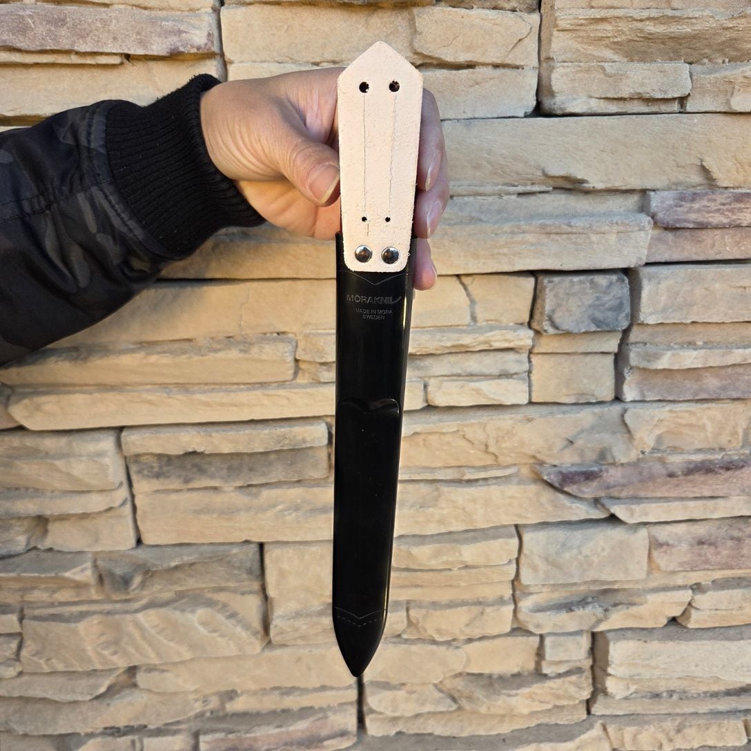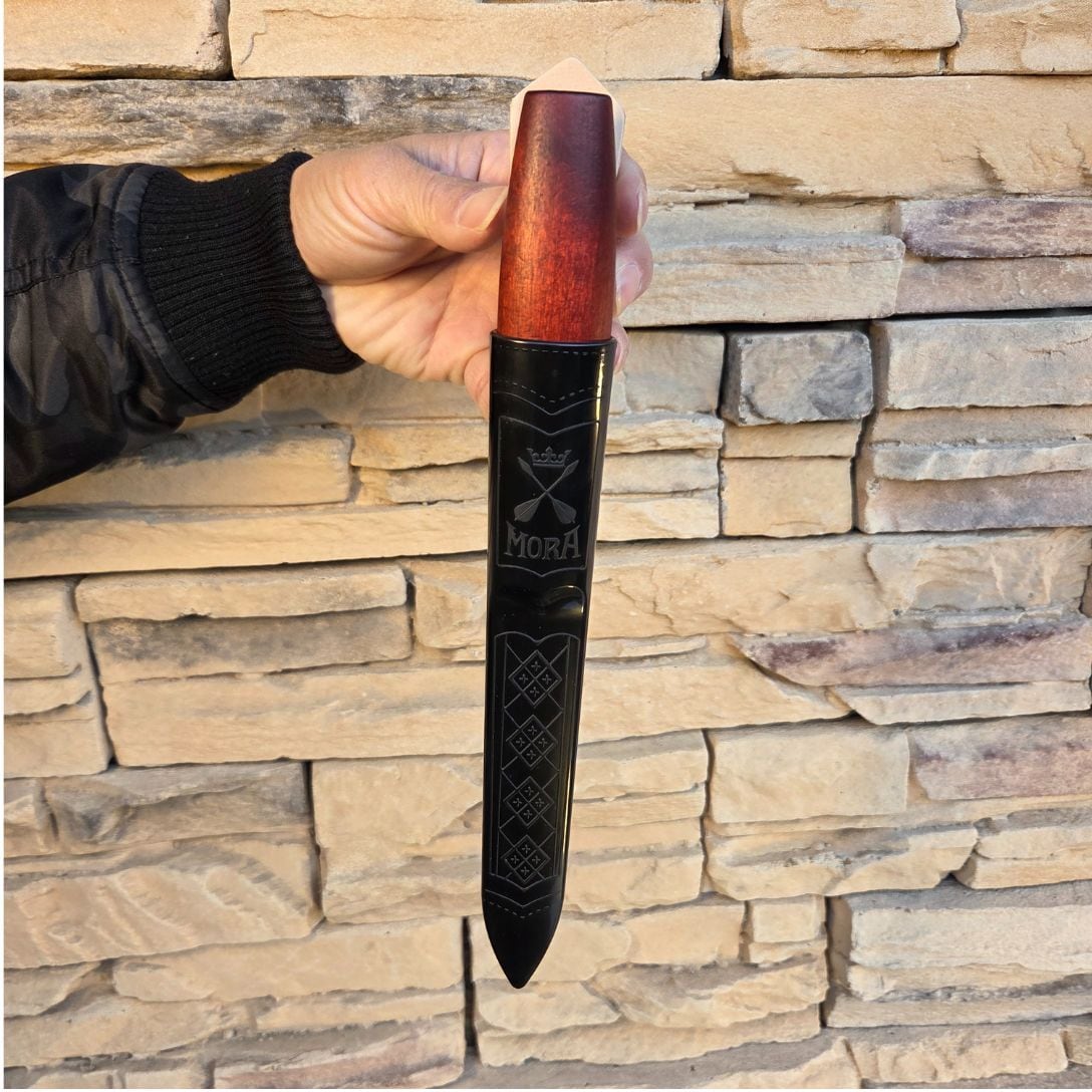 光沢のあるポリマー製シースにはダーラナ地方の盾をあしらっており、付属のスウェーデン産植物性タンニンレザーのベルトストラップは、何世代にもわたり受け継がれるようにデザインされています。