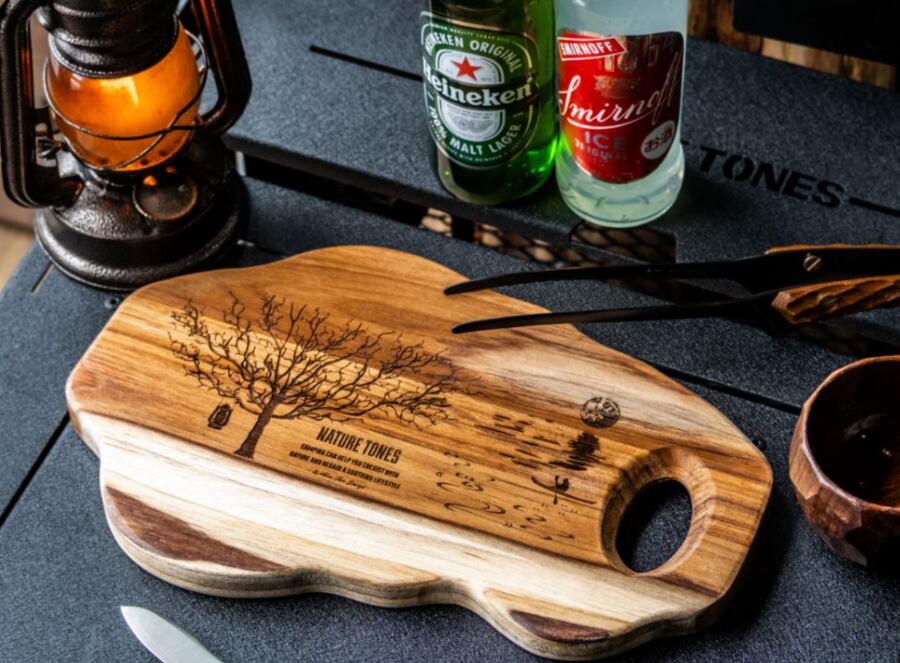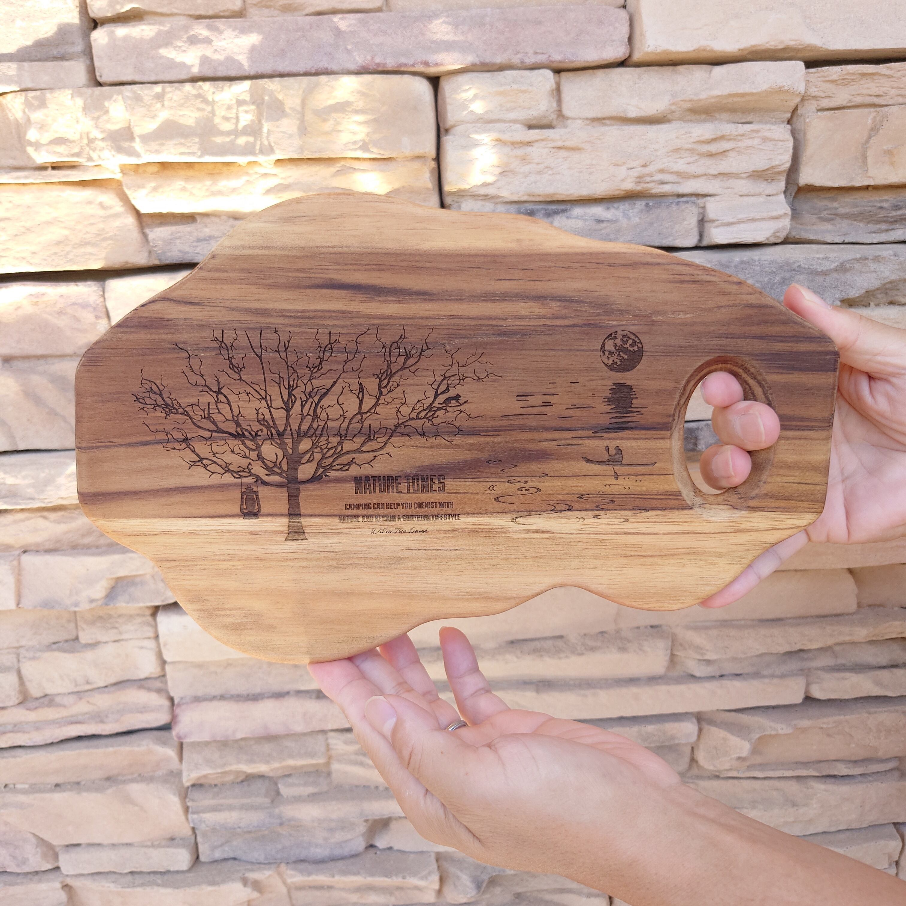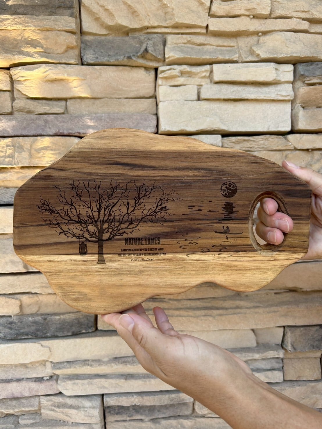 夜月に照らされる枯れ木と湖畔がモチーフデザインの「カッティングボード」
