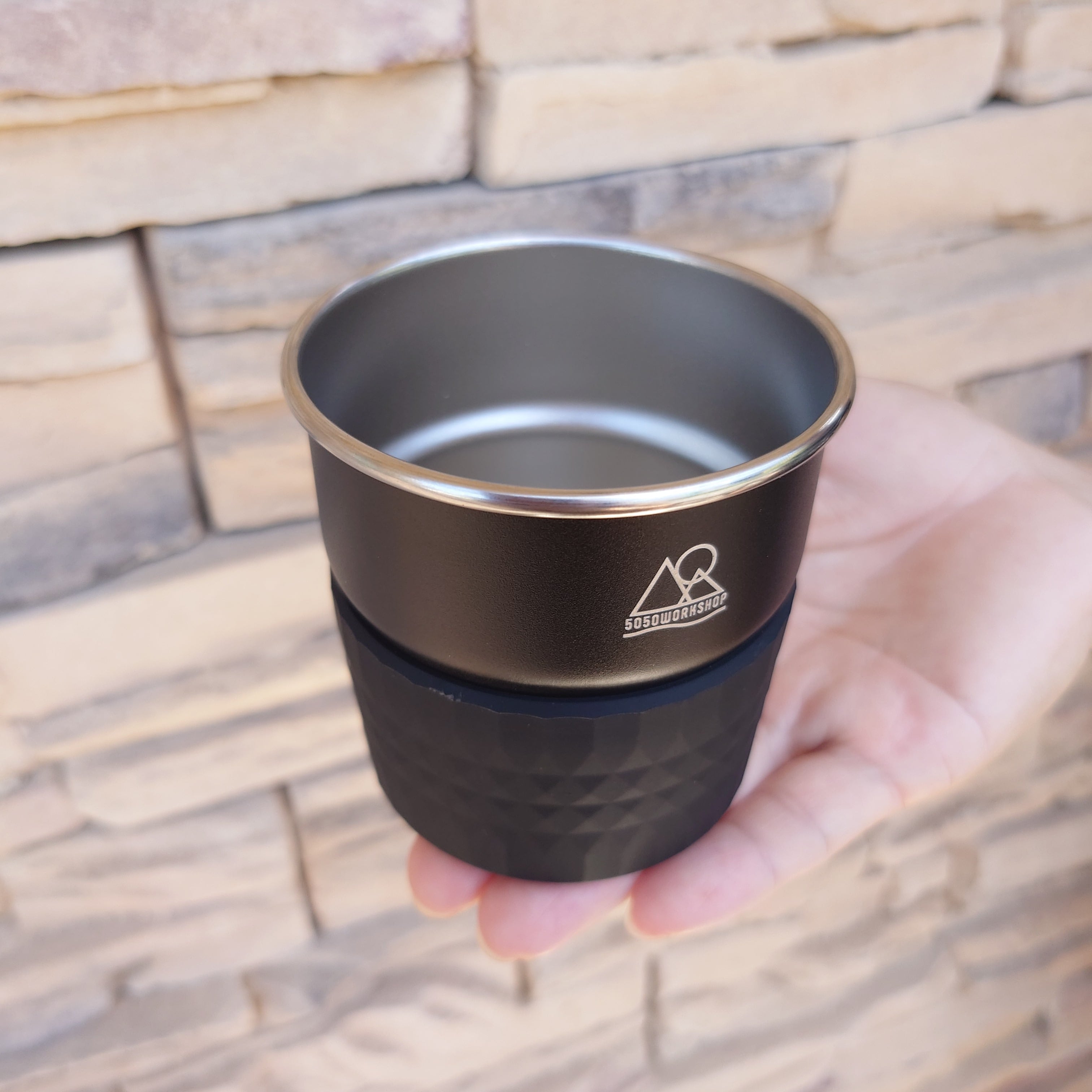 持ち手をなくしシリコンカバーを採用したカップ。持ち手を廃止したことによりシンプルな見た目と使い心地を提供。形状によりある程度のスタッキングも可能。