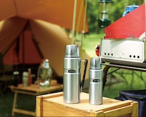 アウトドア仕様のコップ付きステンレスボトル
