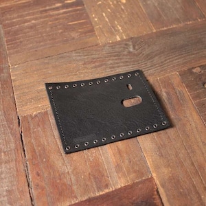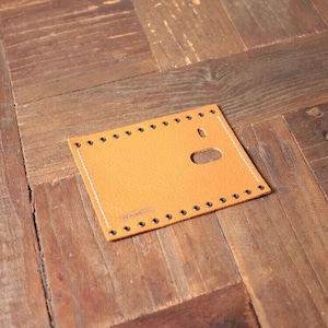 本体のスイッチの大きさに合わせた穴の大きさの場合、革を巻いた時に穴が広がってしまい、フィット感が損なわれてしまう為、画像にある穴の大きさに設定しました。