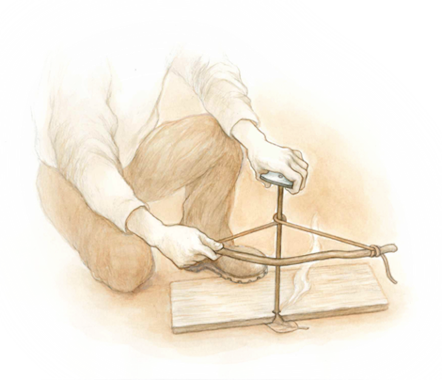 自作の手間を軽減するとともに、押さえの摩擦抵抗が格段に少なくなるため、火おこしが楽になります。