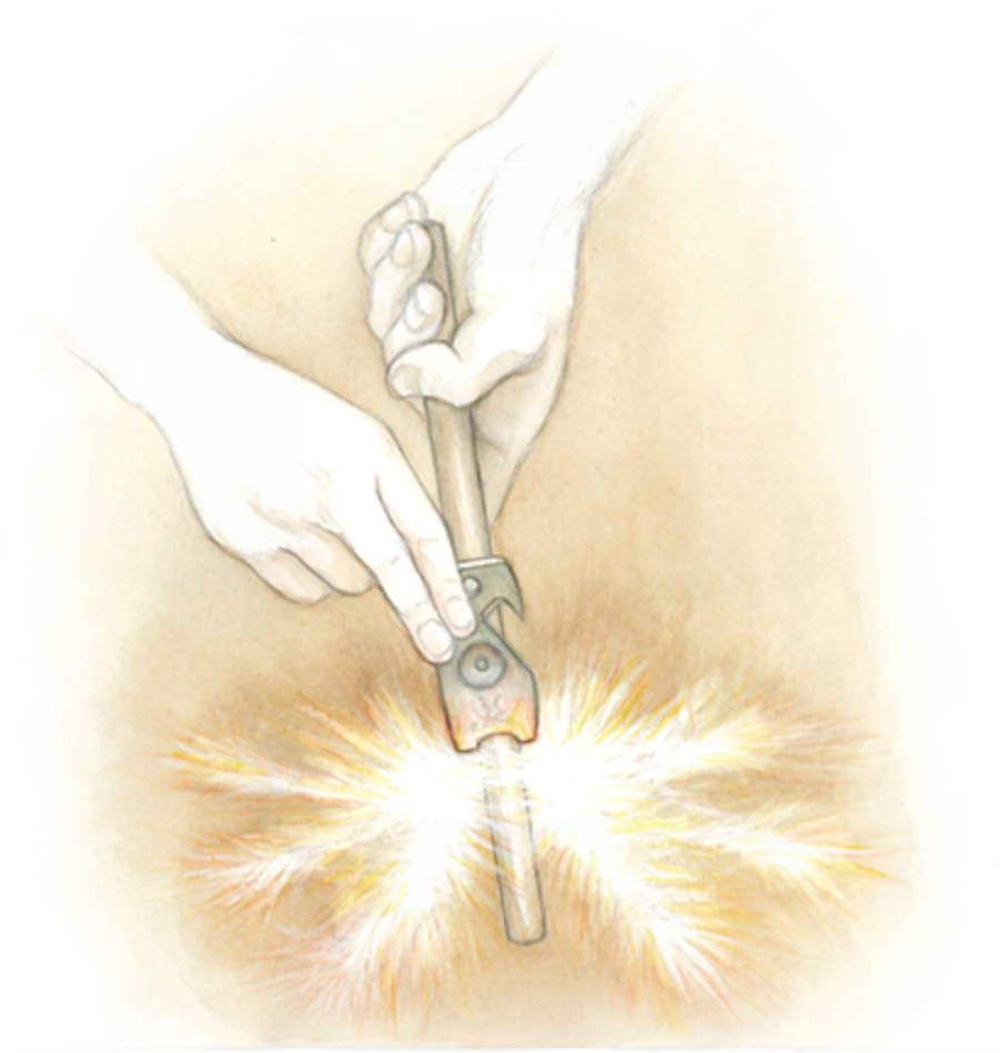 火打金は高炭素鋼でなくてはならず、適切な炭素含有量と硬度を実現しつつ、量産化するために、いくつもの失敗を重ねました。