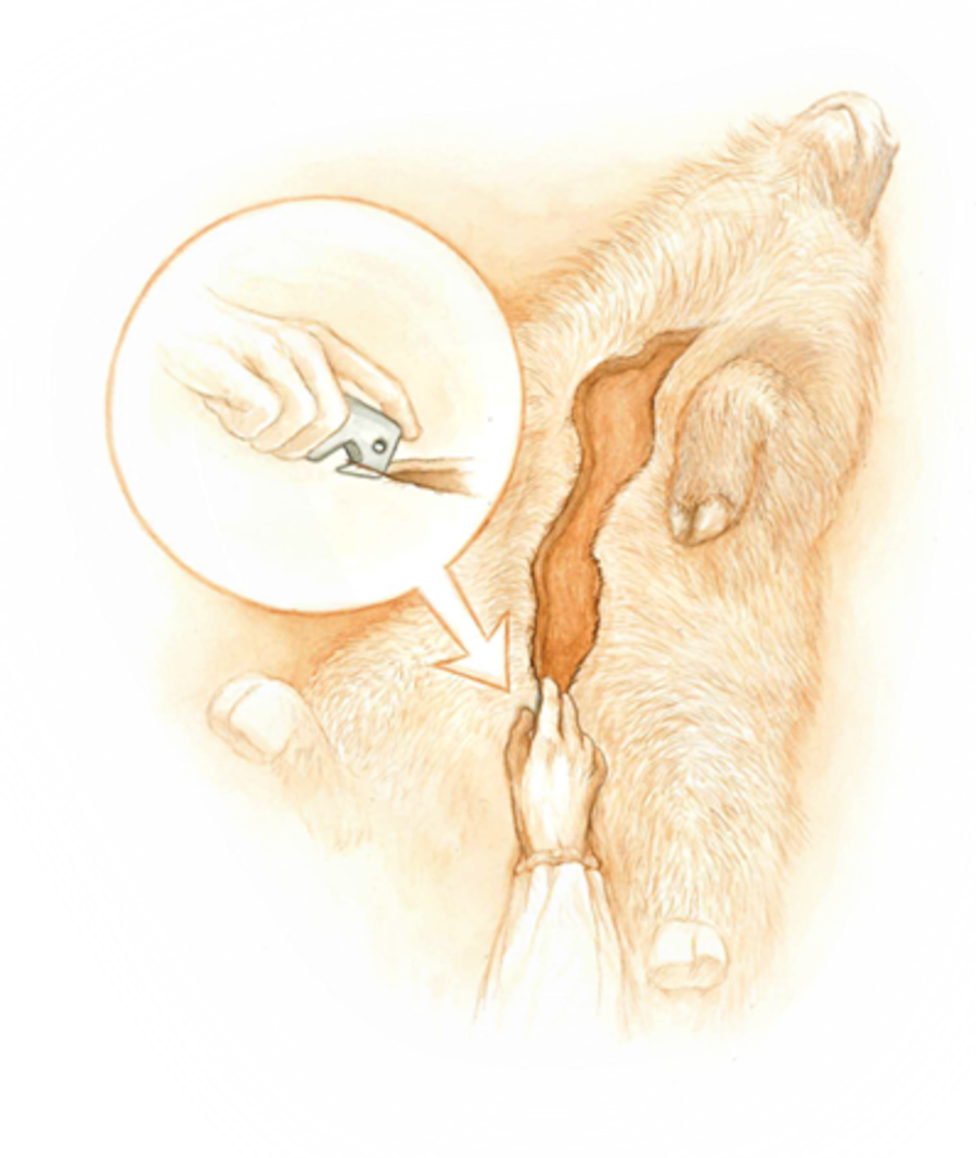 捉えた獲物は、初めに内蔵を処理します。そのため腹を開きますが、内臓を傷つけると、汚物で肉が傷みます。