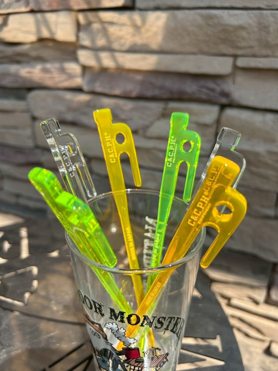 ペグ型マドラーで、いつでもどこでもお家にいてもアウトドア気分を味わえる。カラーバリエーション豊富で、お酒からソフトドリンクまで、より楽しい時間を過ごせそう。