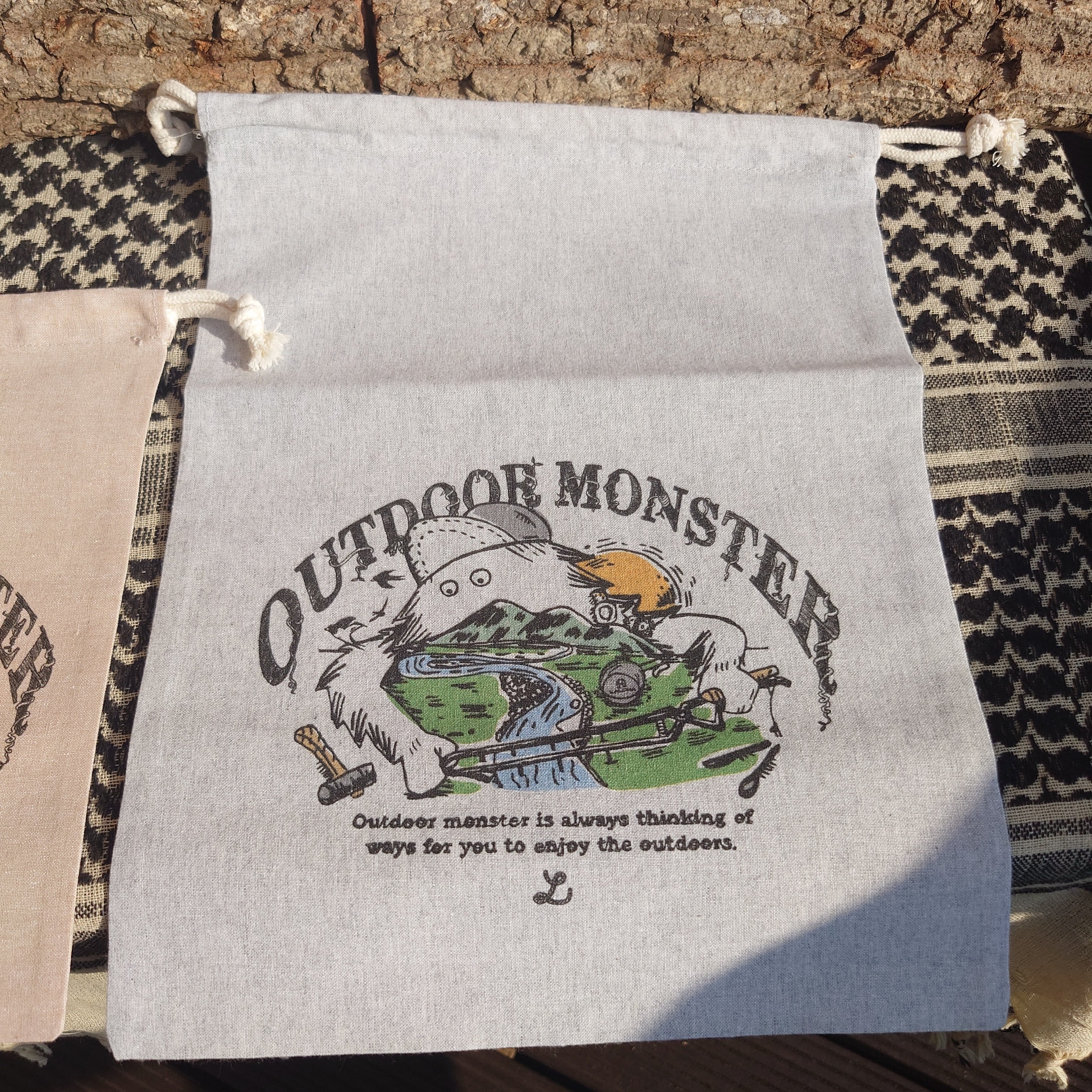 アウトドアモンスターのプリントが可愛い巾着袋