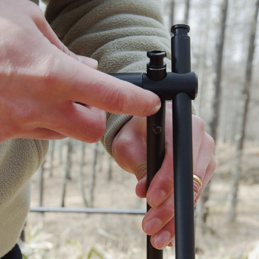 アウトドアでの使用に耐える剛性や、移動時の携帯性を犠牲にすることなく、スライドするだけで誰でも出来る簡単操作での調節機能を実現。