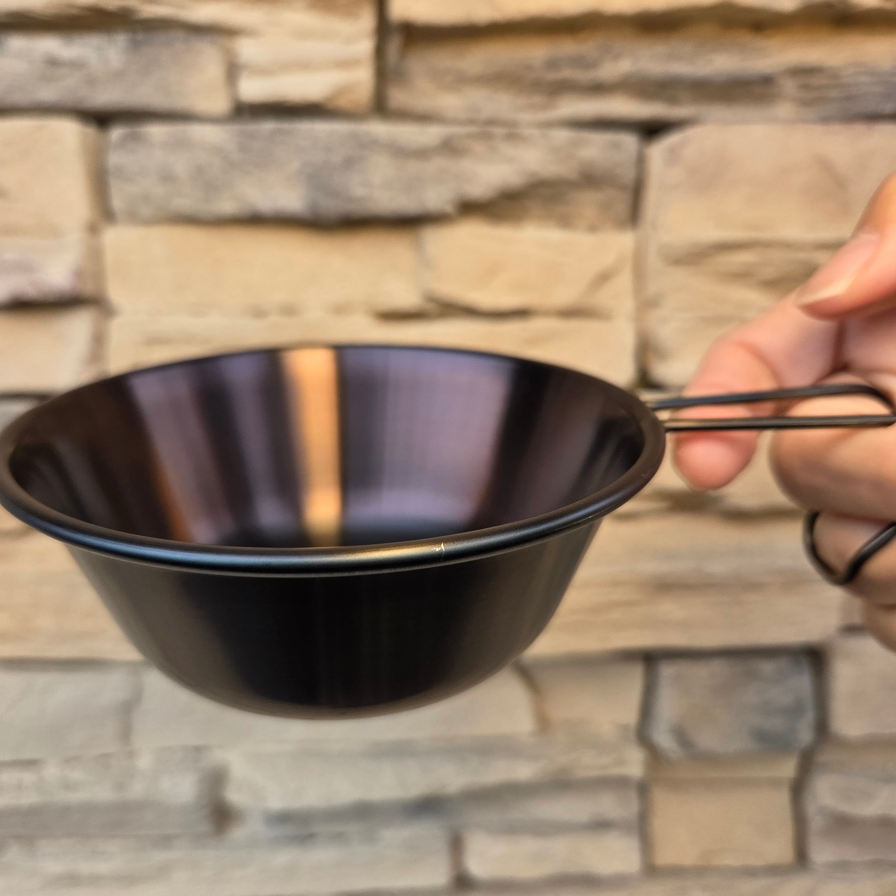 軽量で持ち運び・取り回しにも便利なシェラカップです。職人が手作業で生み出す美しい曲面によって底面がお椀型になっており、中の料理をすくいやすい構造になっています。