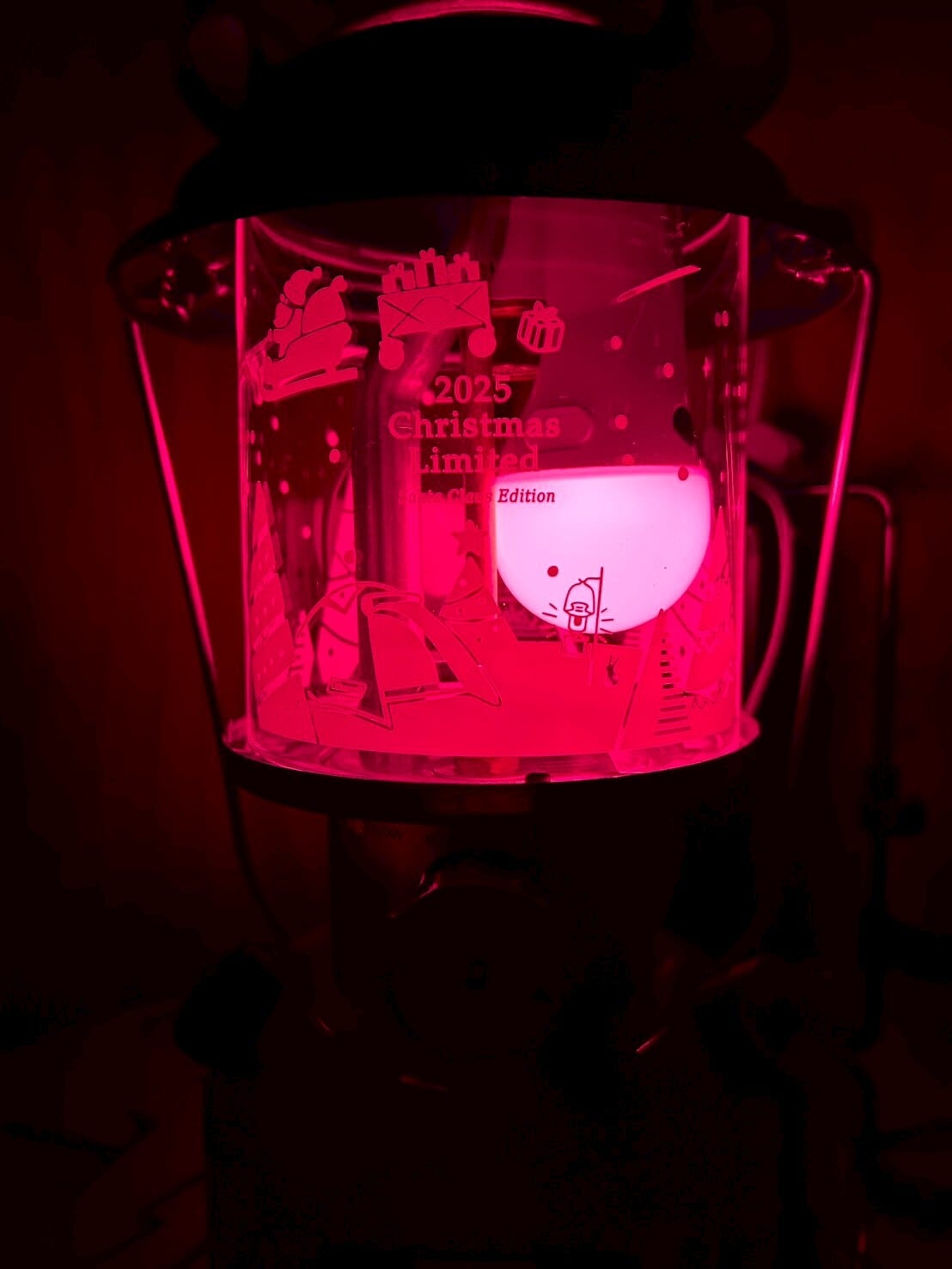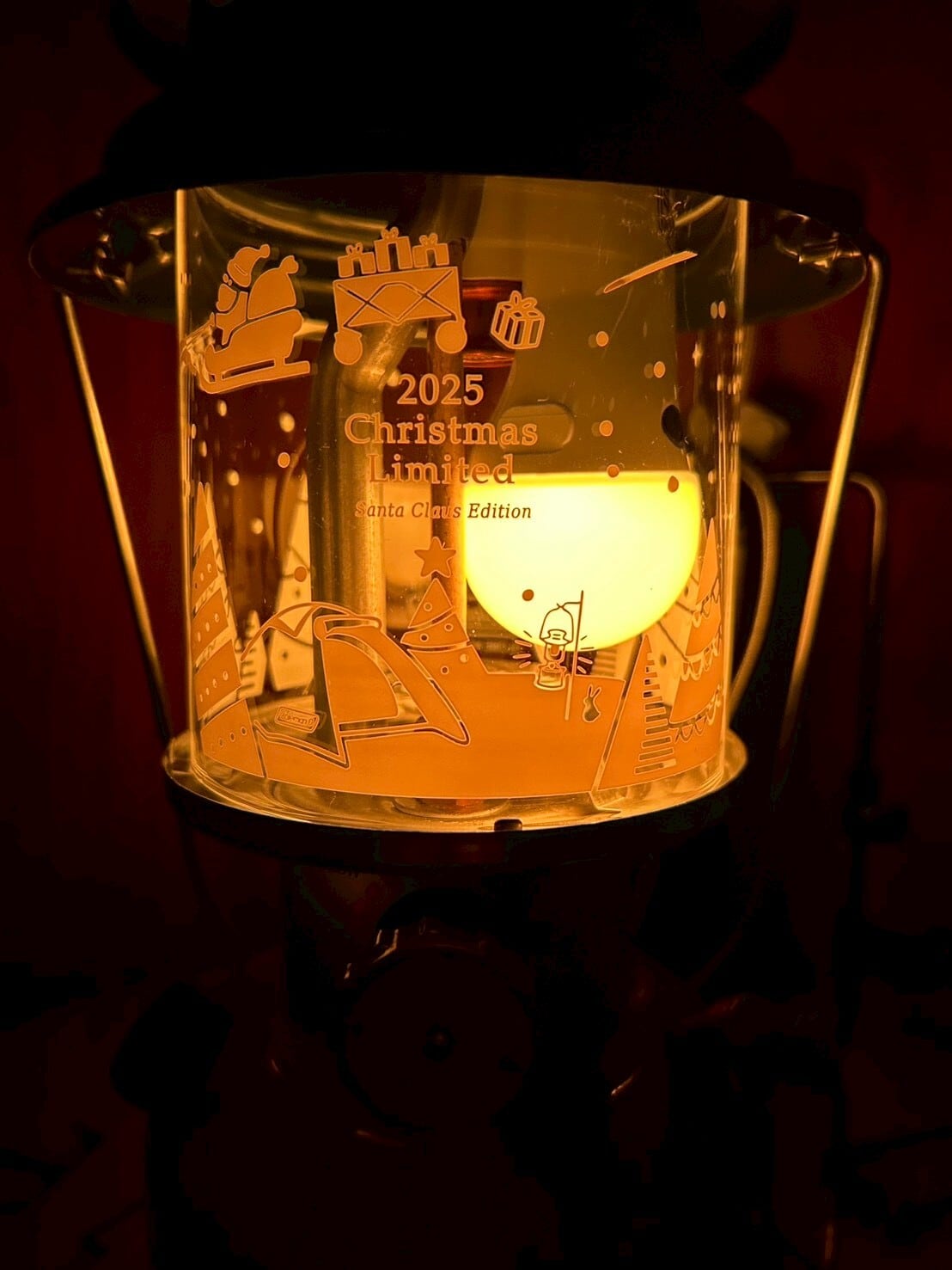 レッドとグリーンのパーツが組み合わさったクリスマスらしいカラーリングに、クラシックな印象の限定ロゴ。さらに、グローブにあしらわれた愛らしいイラストが特徴です。点灯すると優しくイラストが浮かび上がるようなデザインで、冬キャンプの雰囲気を盛り上げるアイテムになることはもちろん、クリスマスに大切な人へ贈るギフトにもぴったりです。