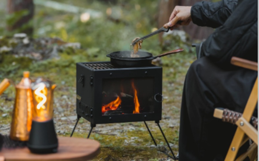 コンパクトな本体サイズながら、燃焼室全体の炎を広々と眺められる設計で、焚き火のような臨場感を演出。