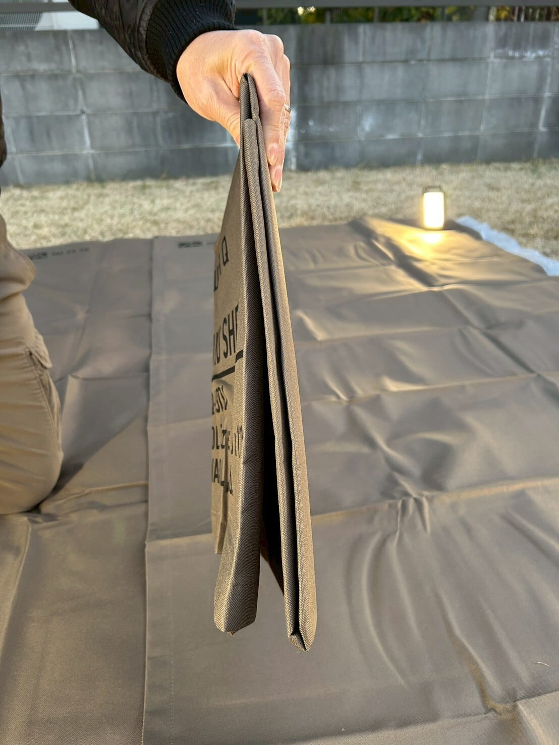 ・火のそばでは使用しないでください。火の粉で生地が焼ける、穴があく恐れがあります。焚き火は十分に距離を取ってご使用ください。