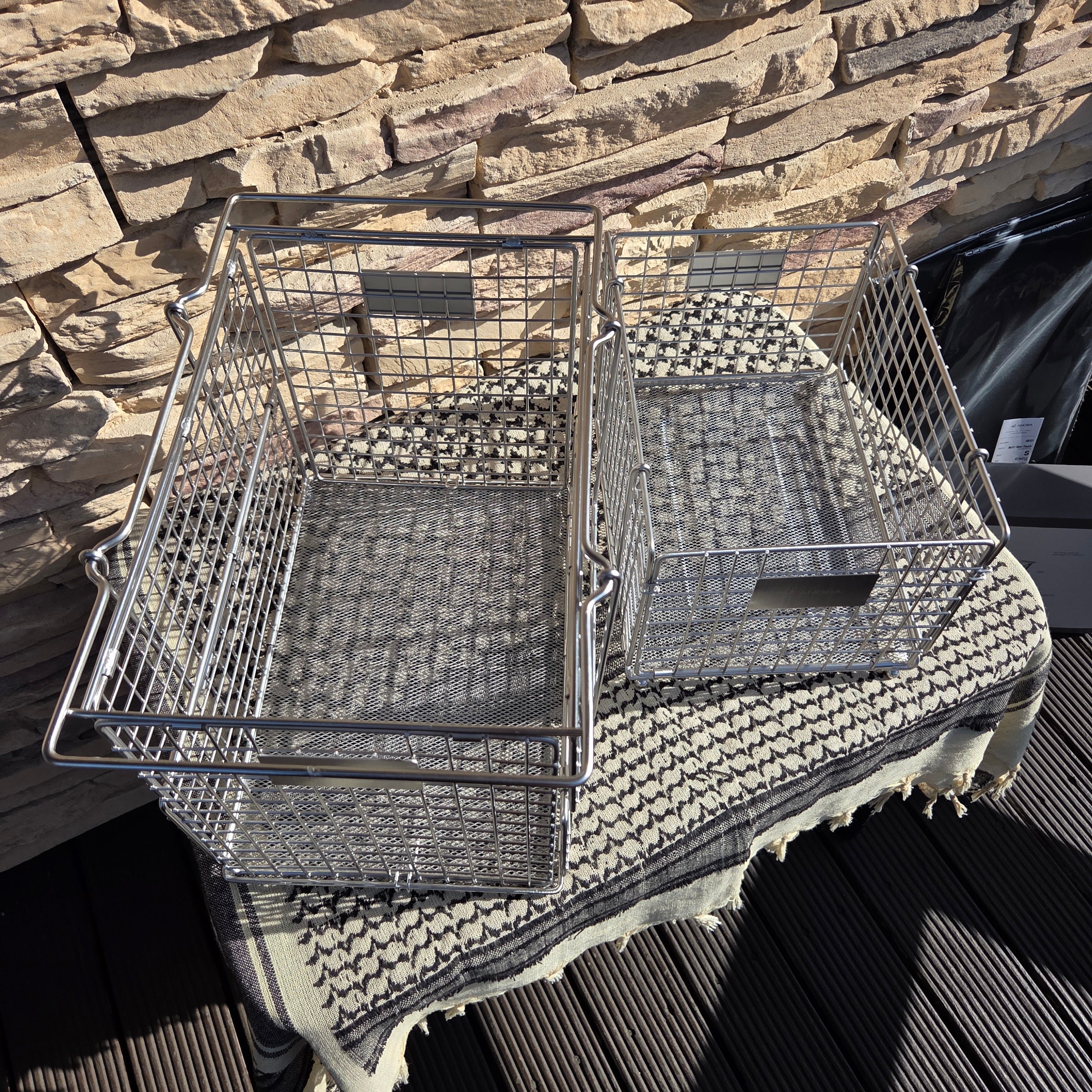 フォールディングワイヤーバスケットにステンレスバージョンが登場。