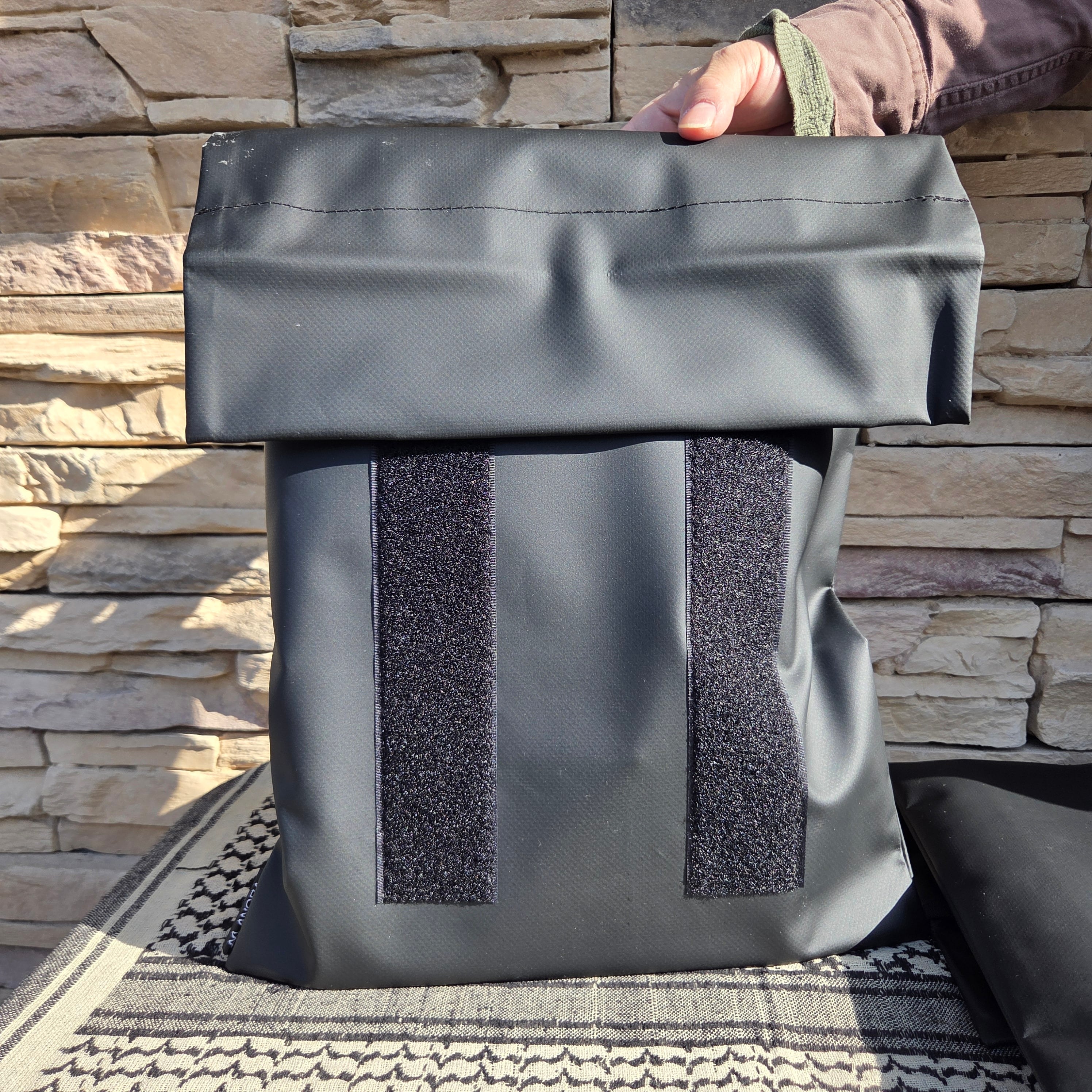 ターポリン生地で厚みがあり汚れにも強いのでタフに使えます。