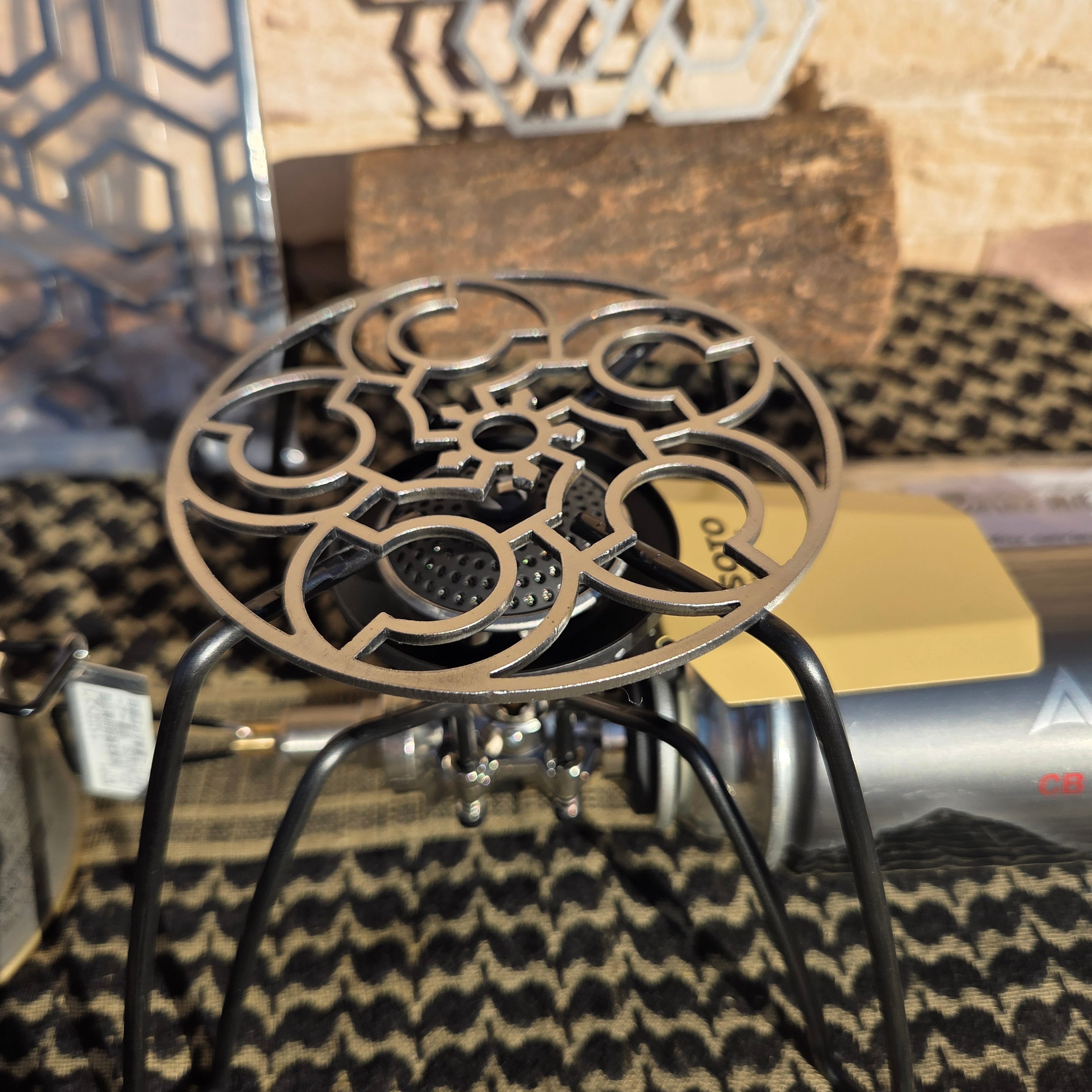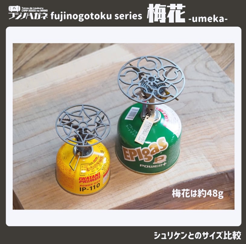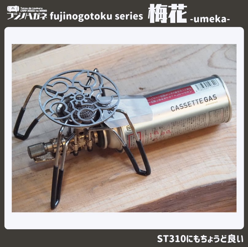 コンパクト・軽量なバーナーは3つ爪のものも多く、不安定になりがちですが梅花があればかなーり安定しますね。