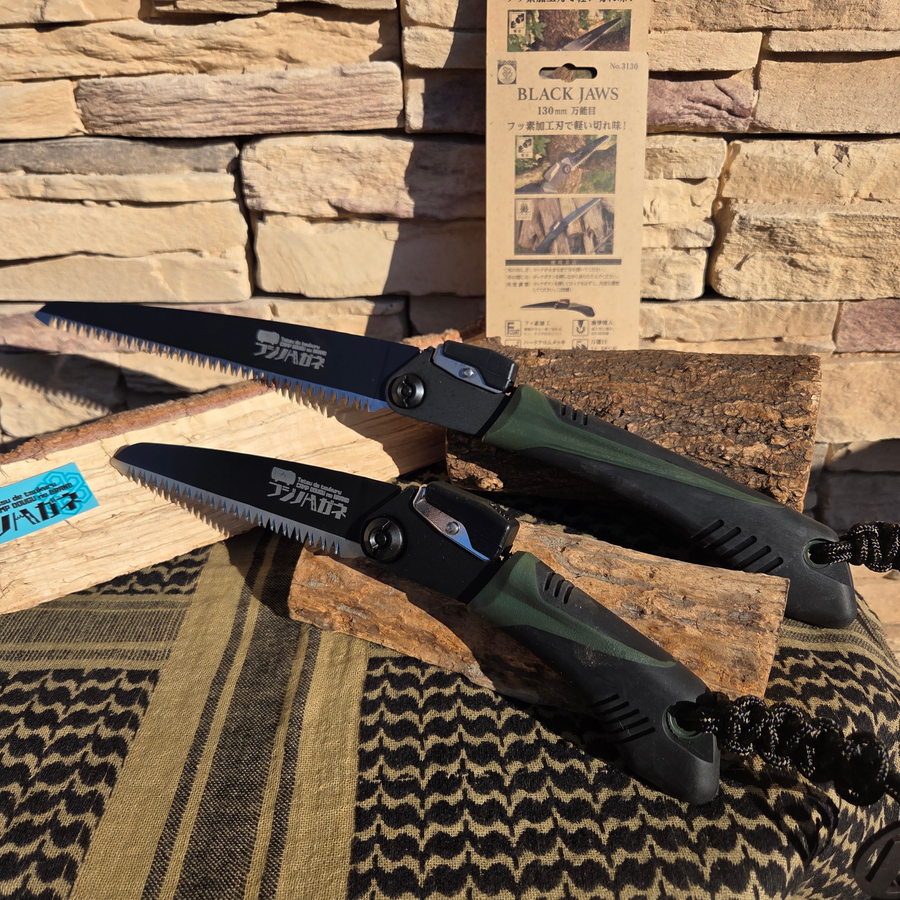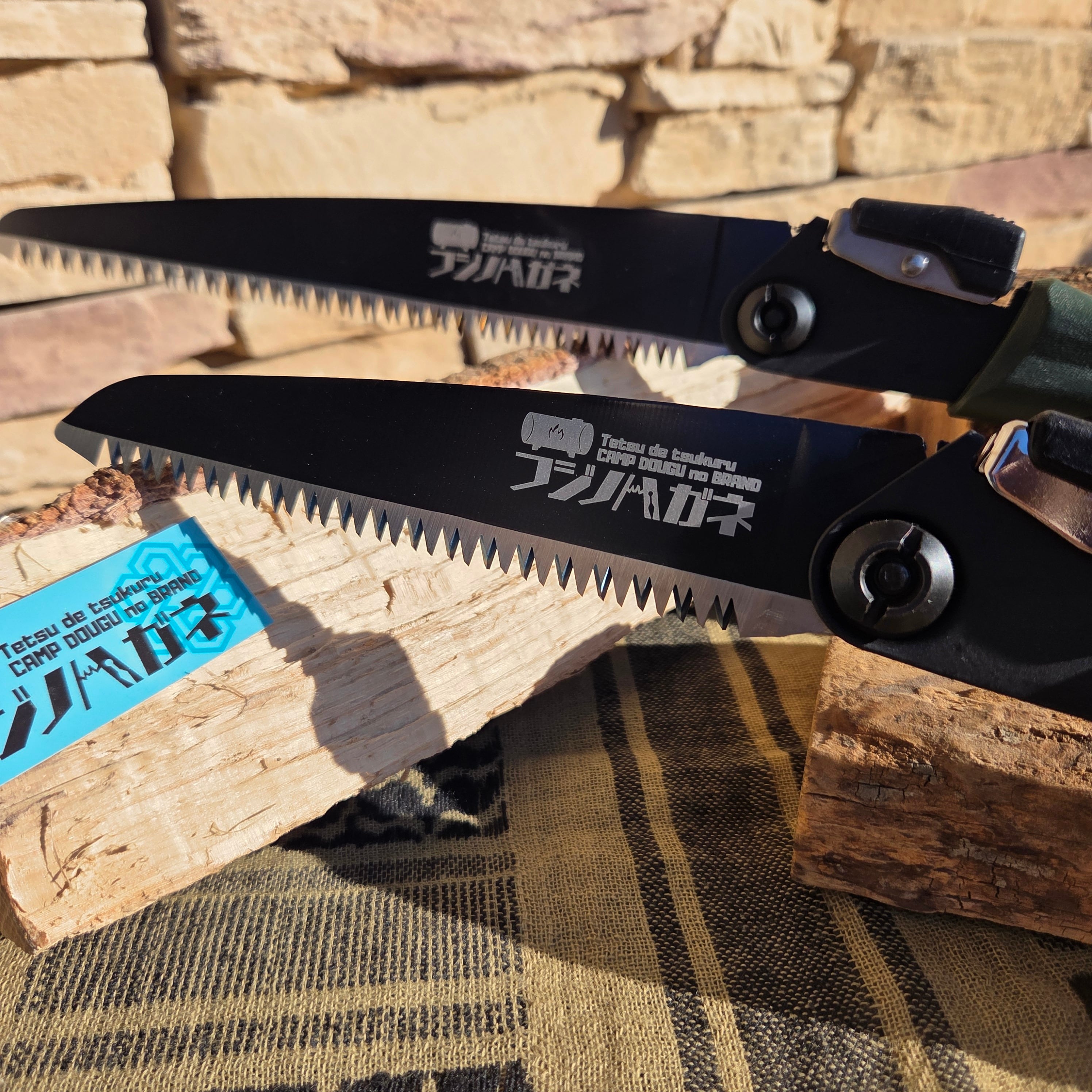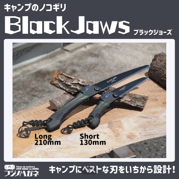 キャンプのノコギリBlack Jaws 〜ブラックジョーズ〜 は、兵庫県三木市で園芸用ハサミやノコギリを製造する(株)サボテンさんとのコラボ商品。広葉樹・針葉樹、生木も乾燥も!欲張って刃の形状をイチから開発。野外でのアウトドア活動に最適なハンドツールです。