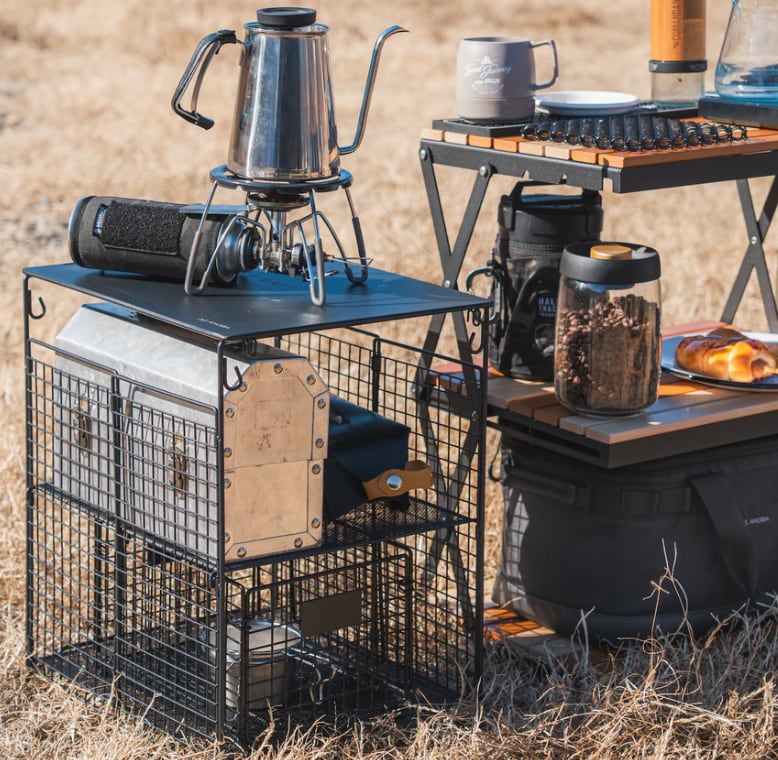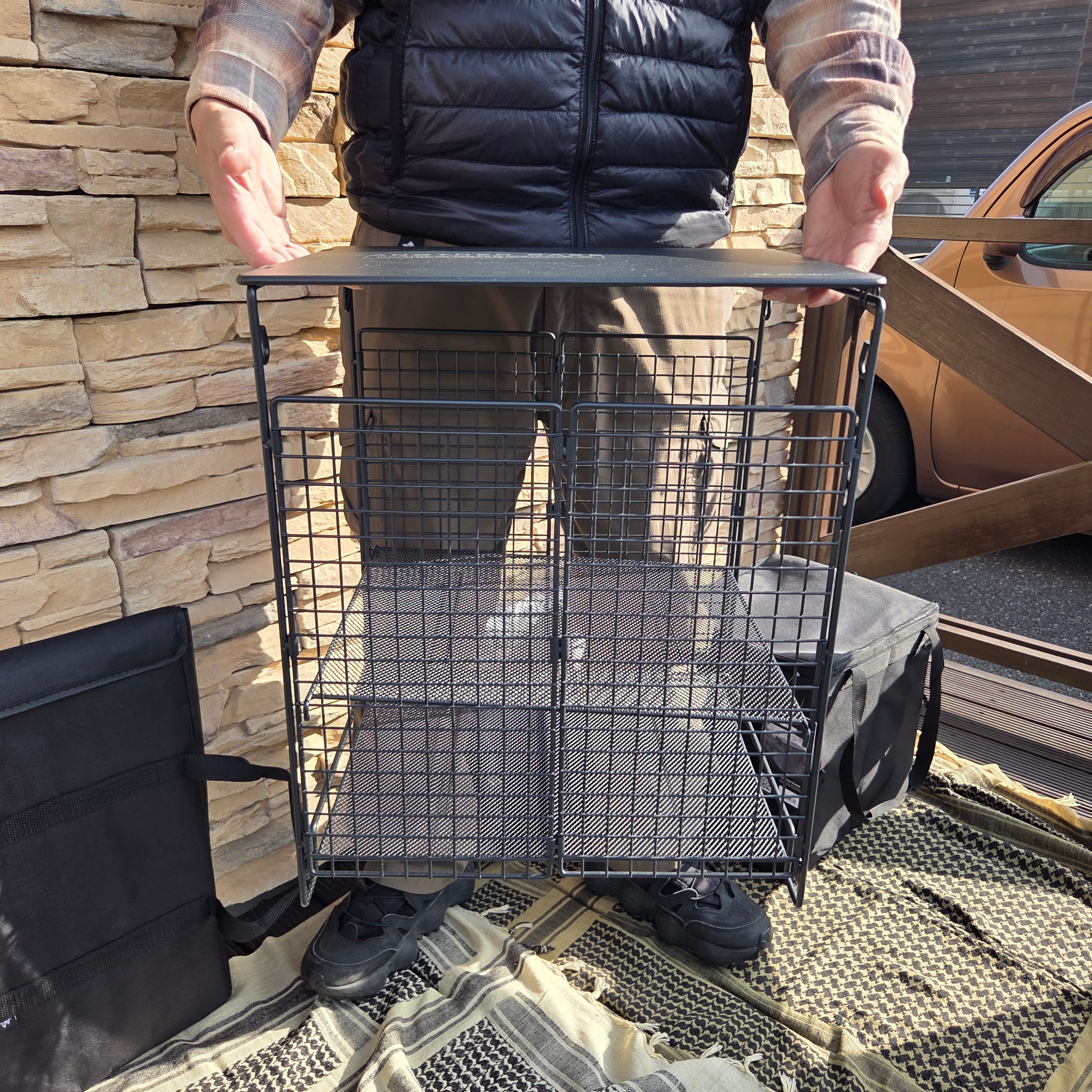 スチール素材なので、焚き火周りでの使用や、火器の使用も可能。
