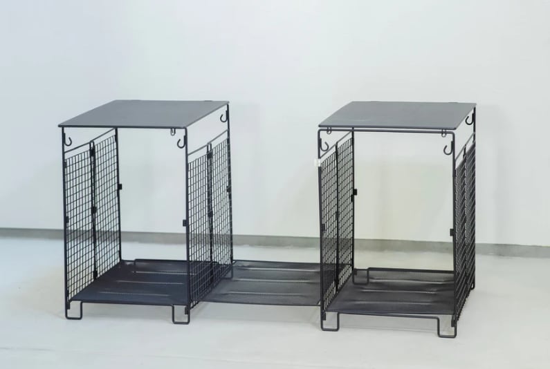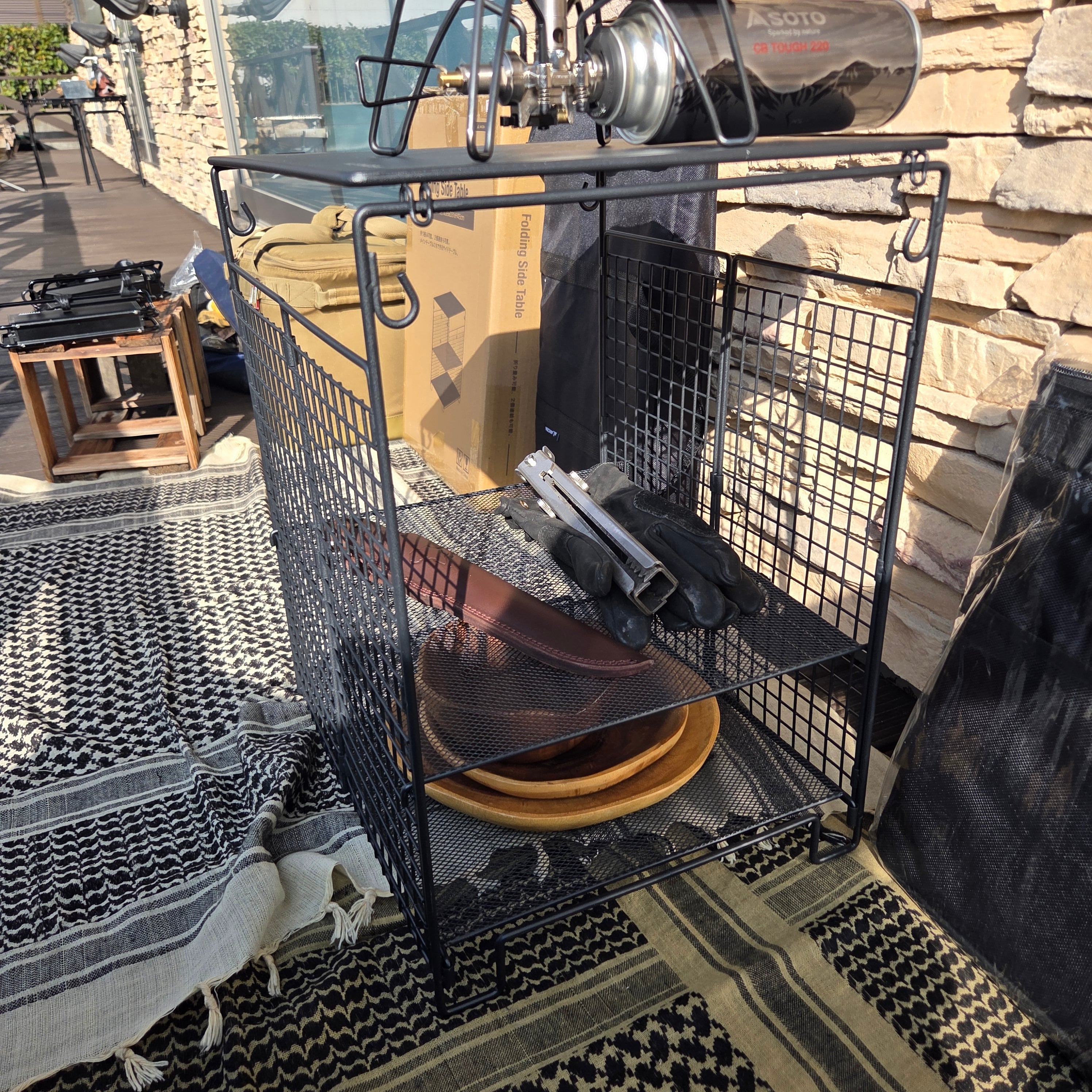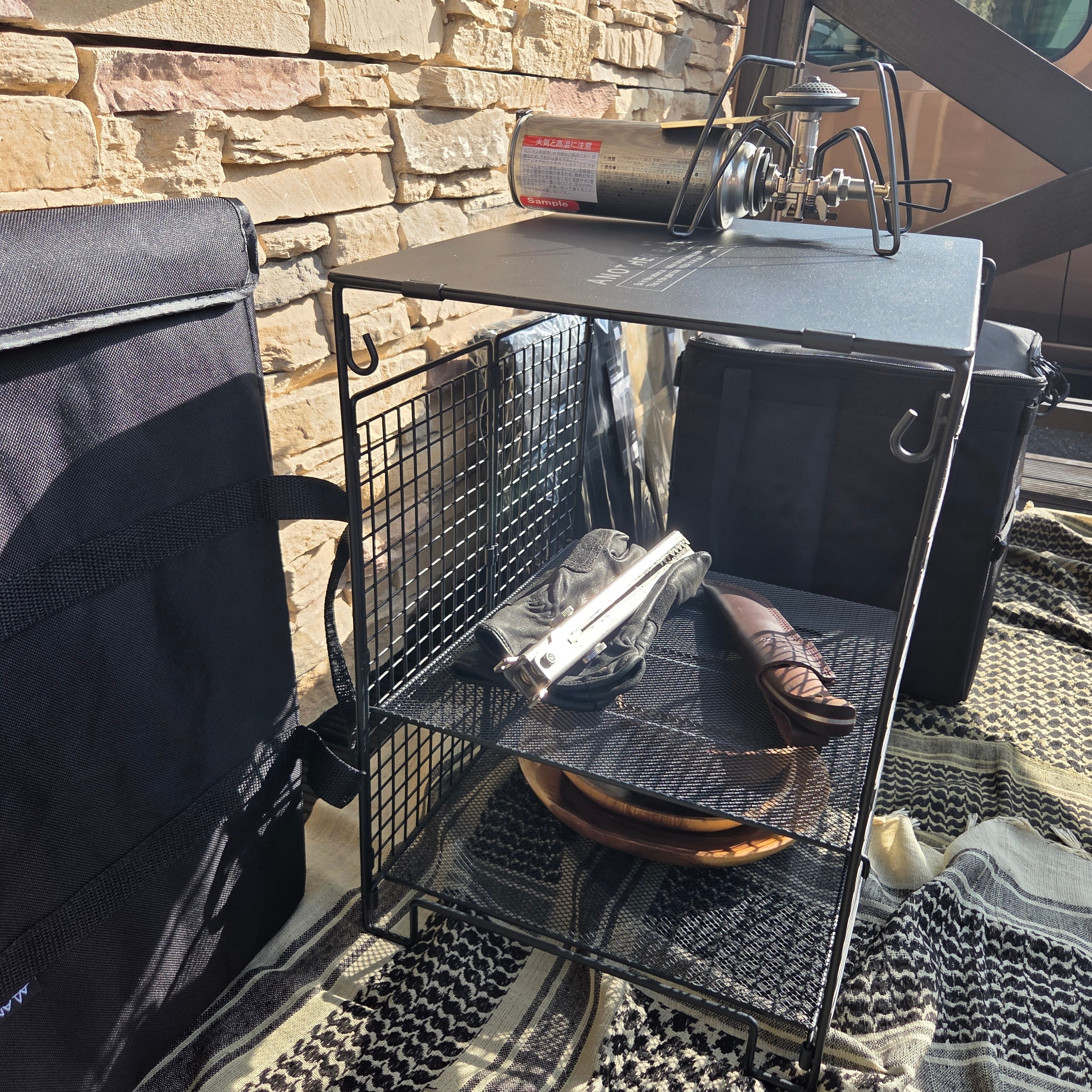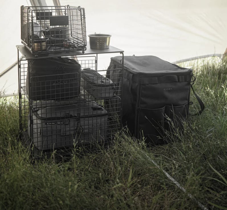 ギアバッグ類の収納ラックにも使え、マルチダストバケット( 別売) と組み合わせてスタイリッシュなルックスのゴミ箱に。天板とゴミ箱の間に手が入るスペースを設けて、ゴミ箱へのアプローチもスマートに。