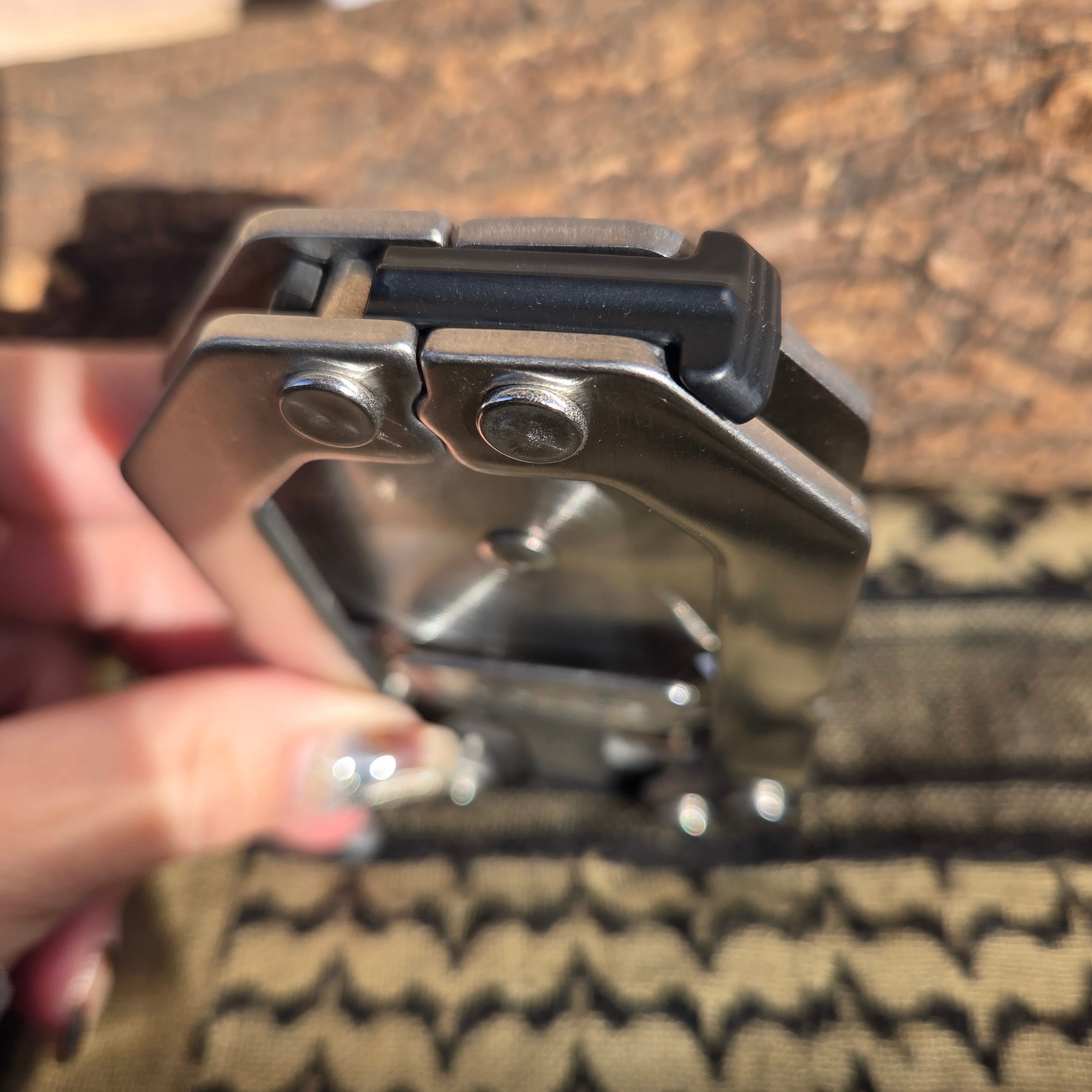 不意な開閉を抑える樹脂製ロックパーツに加え、ハンドルの凹凸によりズレを防止