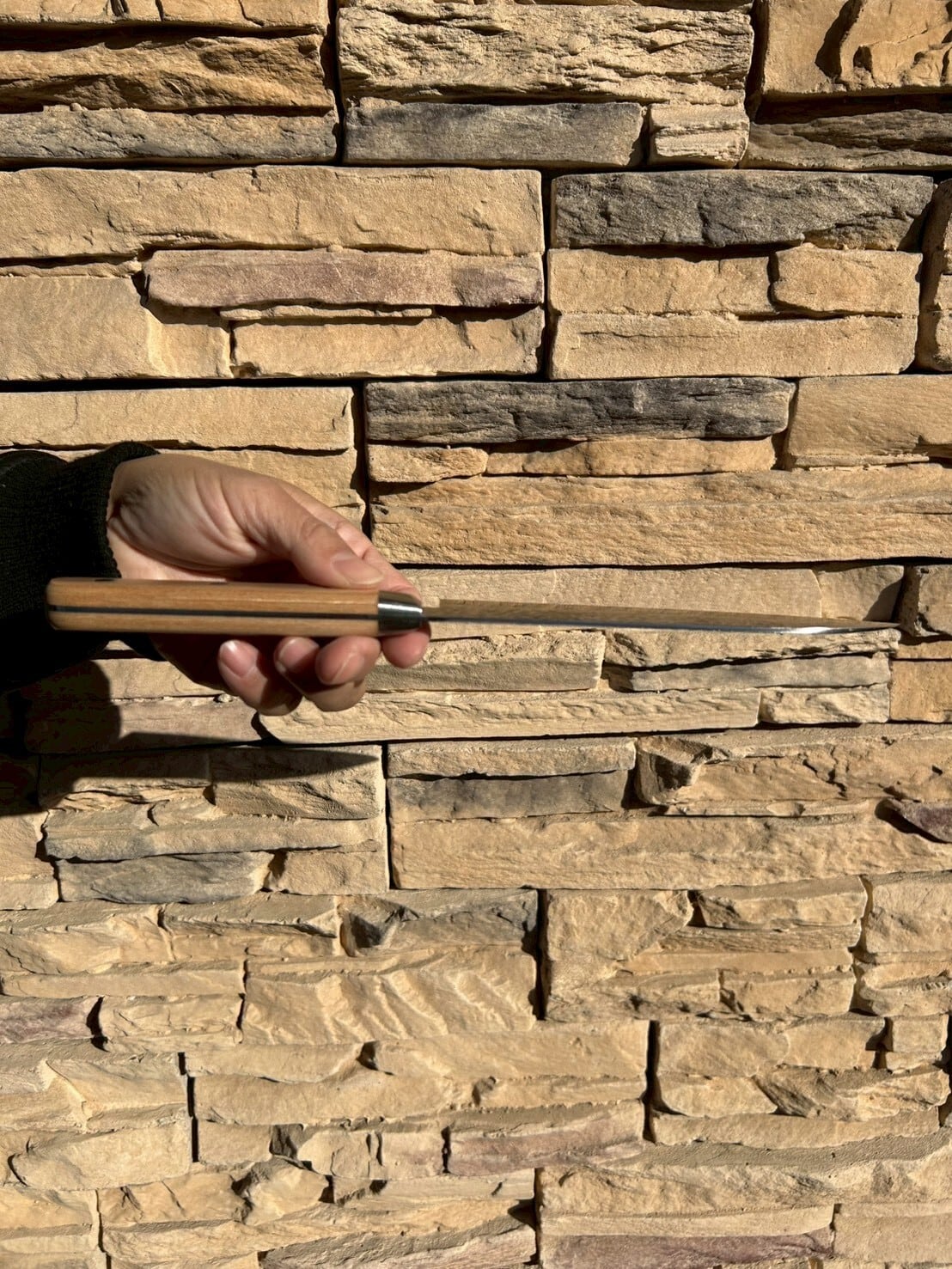 ダマスカス鋼を使用しているため、刃に独特の波紋模様が浮かび上がる