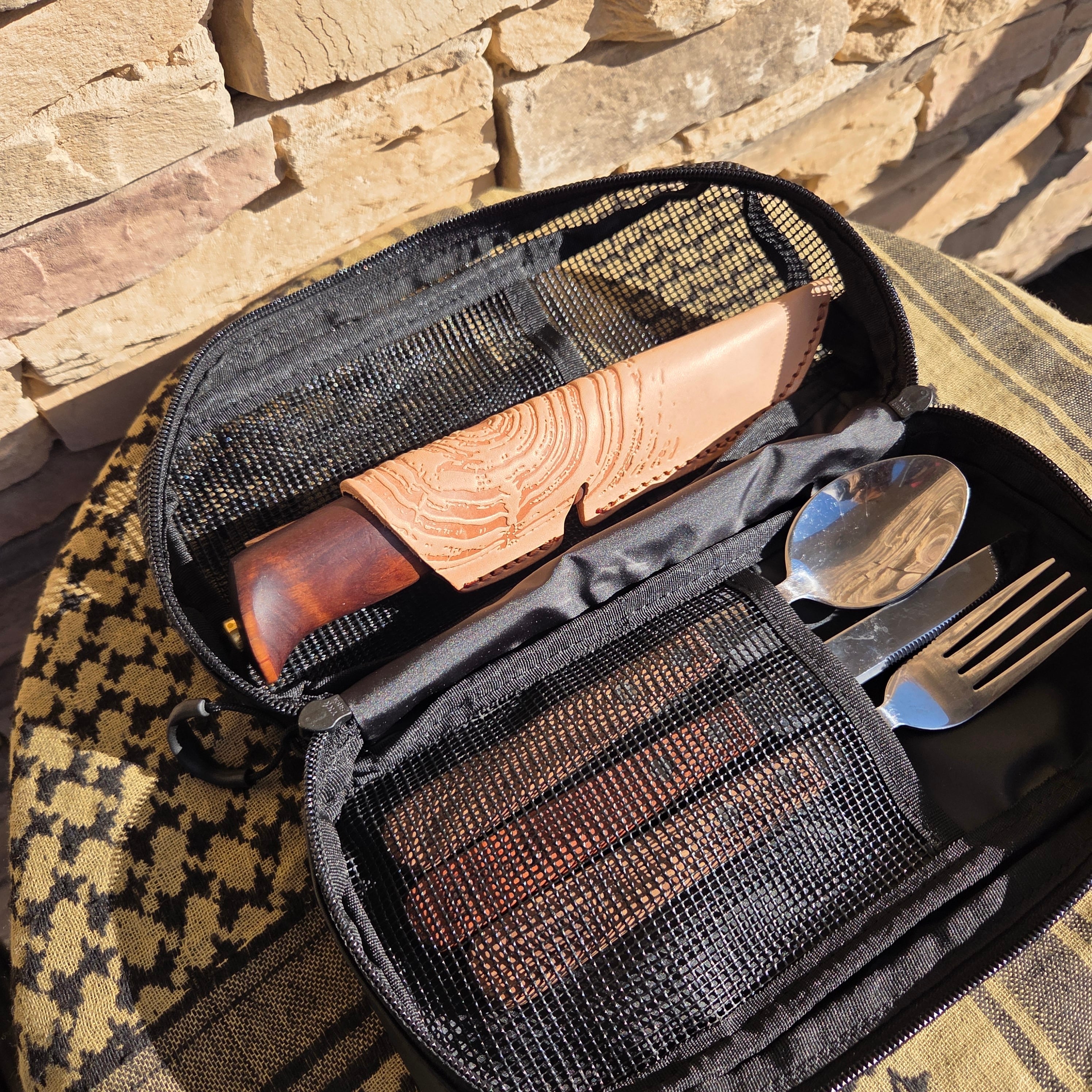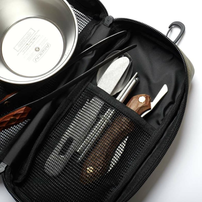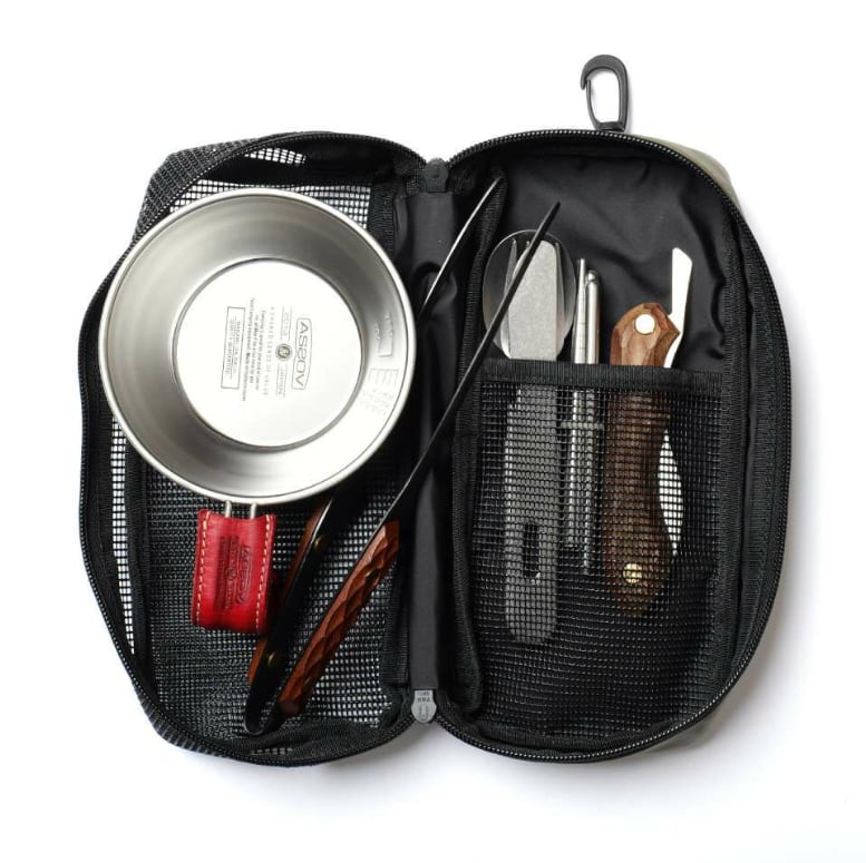 カトラリーをはじめ、アウトドア小物を収納。洗ったカトラリーをそのまま収納し、ドライネットとしても使用可能。