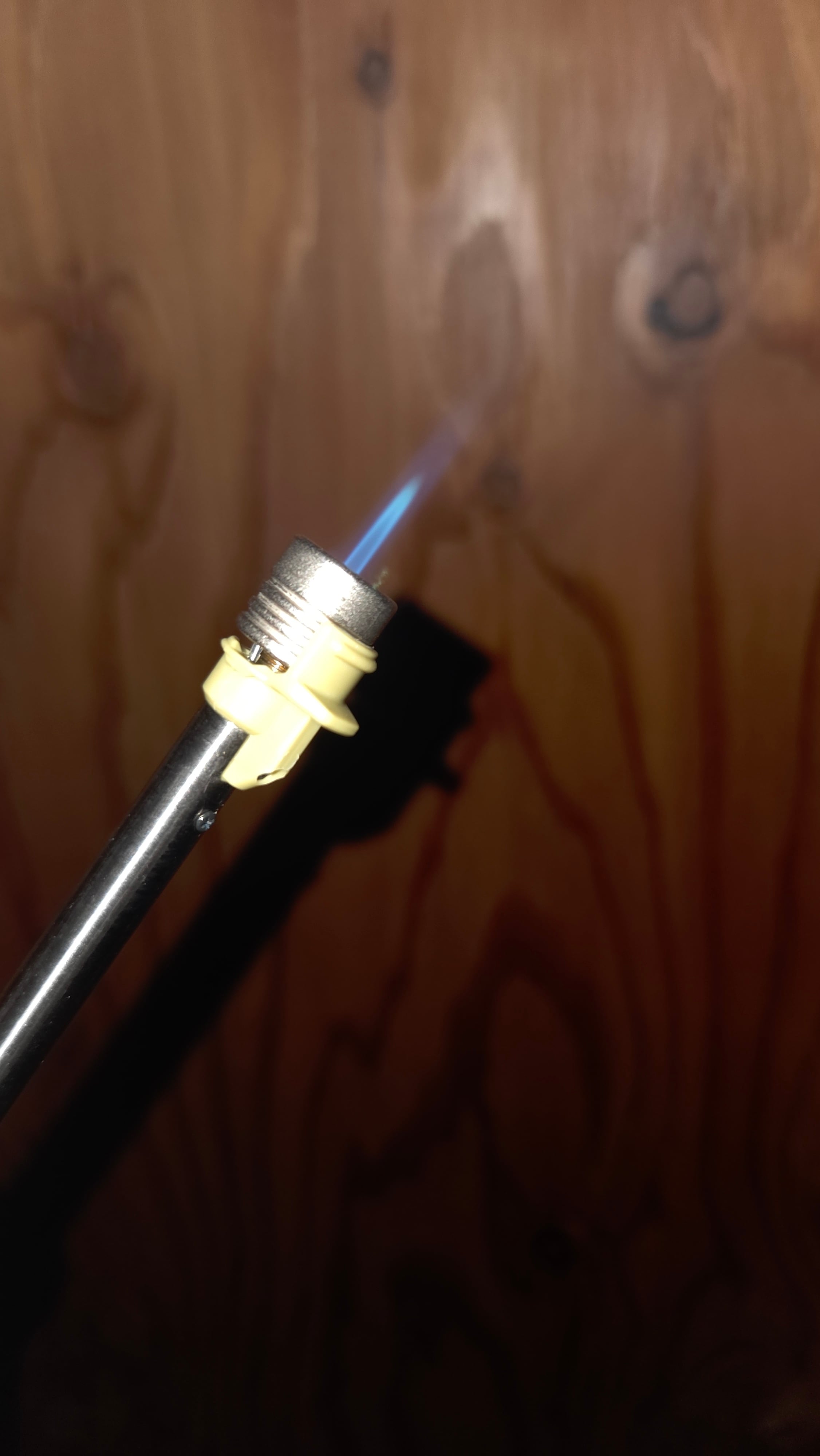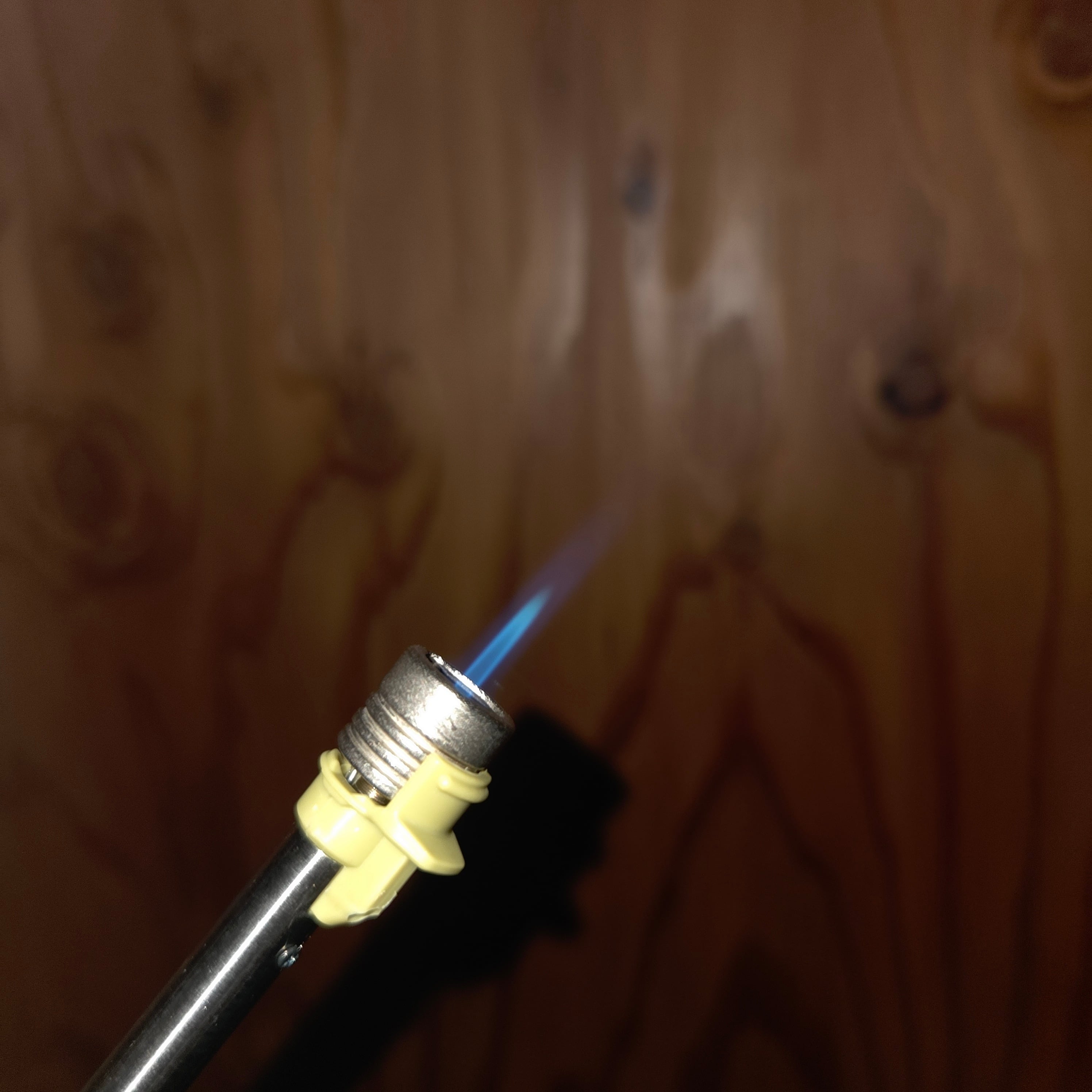 火口がのびる小型耐風バーナー。