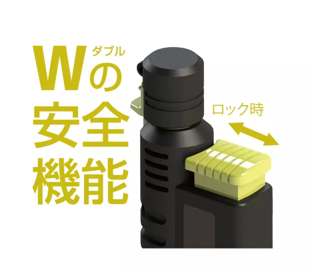 安全のための火口キャップ付。ポケットや荷物の中での誤作動を防ぎます。