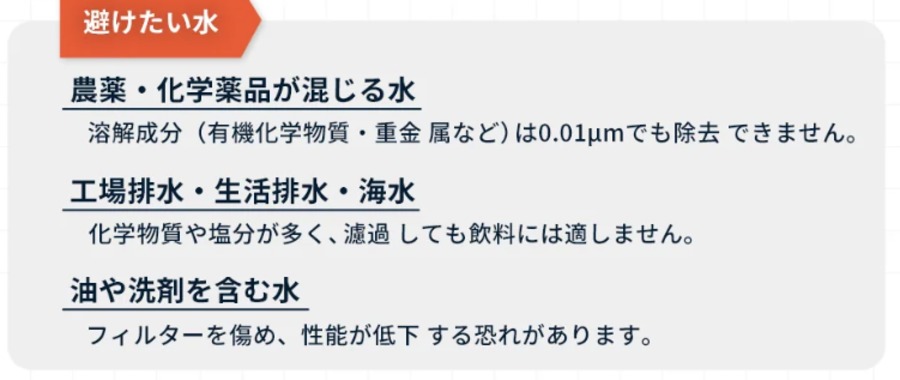 ・完全に水中のウイルスを除去できるわけではありません。
