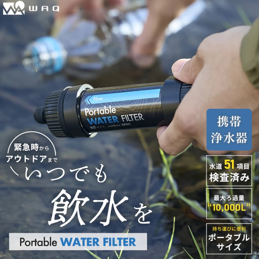 【WAQ ワック】WAQ Portable WATER FILTER|携帯浄水器 0.01μm除去・直飲み対応・アウトドア/登山/防災用 【1年保証】