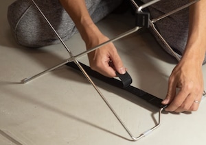 セッティングはワイヤーフレームを広げで凹部をテープで固定すれば完了。