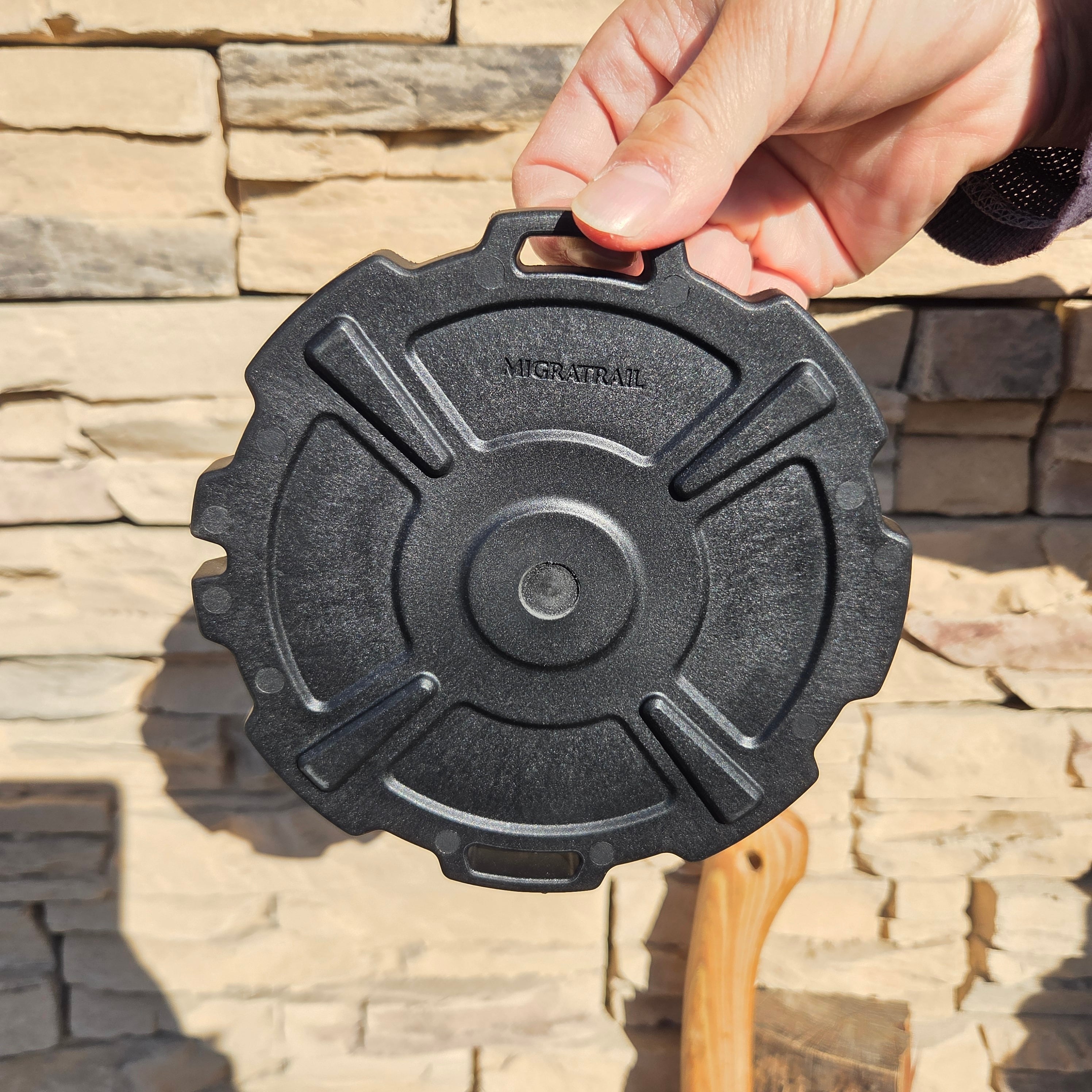 劣化しにくく、水洗いもできる高強度樹脂を採用。薪と相性の良い切り株をモチーフにしたデザイン。