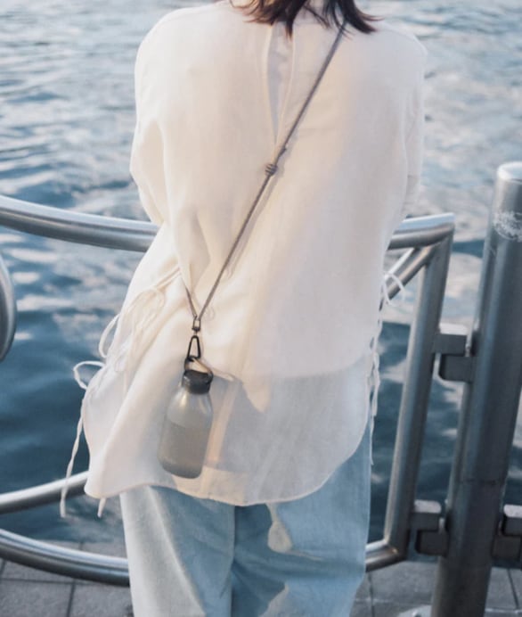 ボトルの重さはわずか51g。満水にしても重さを感じにくく、散歩や買い物など、普段の外出にも気軽に持ち歩けます。身につけても負担にならない軽さが、水分補給を自然に続けられるものにします。
