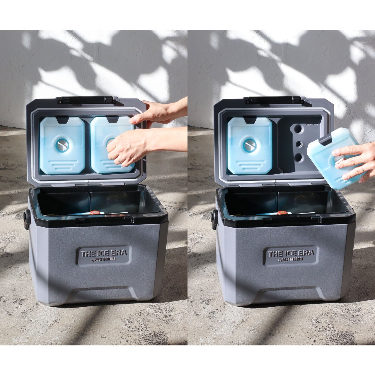 蓋裏面に取り外し可能な保冷剤が付属した機能性クーラーボックス。