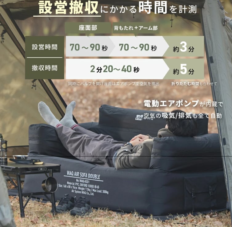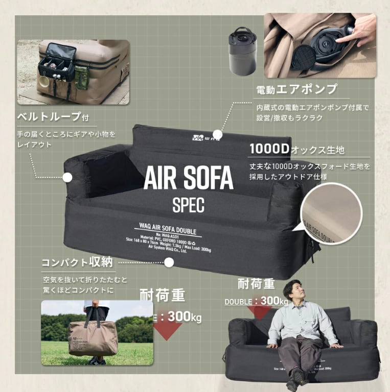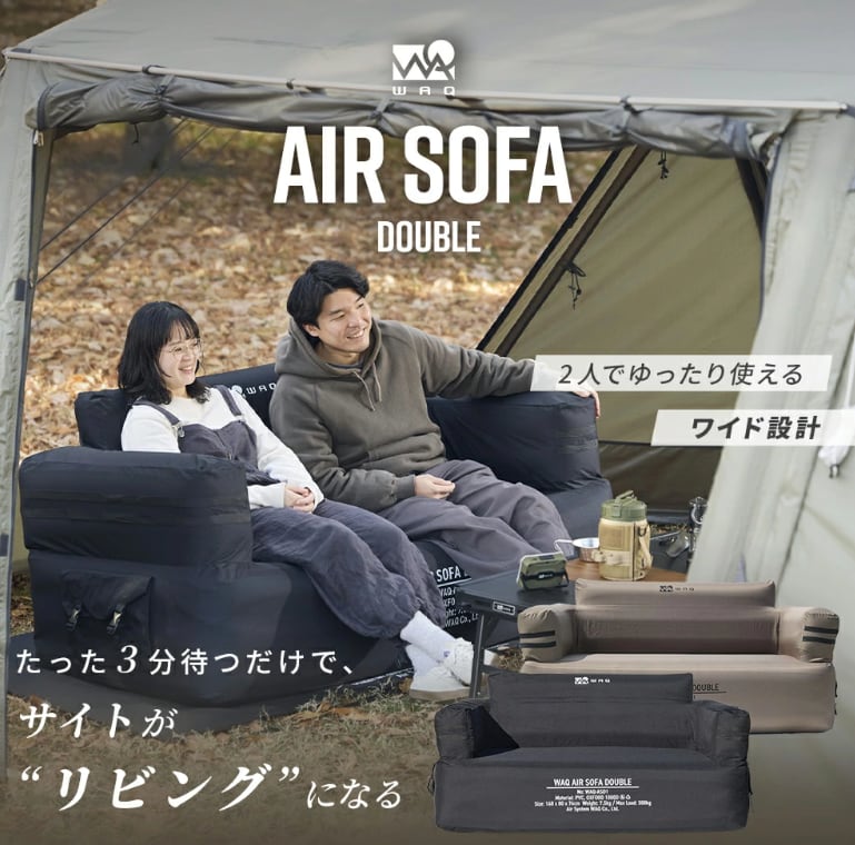 【WAQ ワック】 AIR SOFA ダブル エアソファダブル ※カラー:ブラック