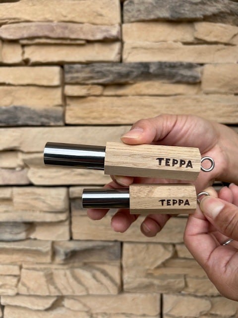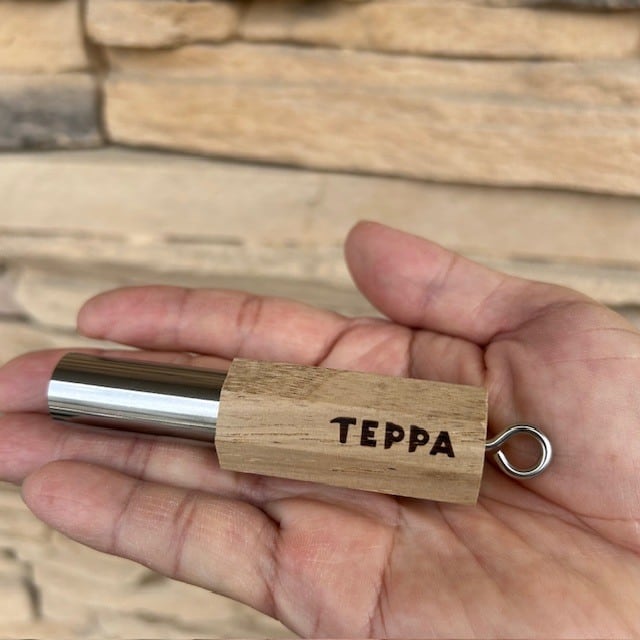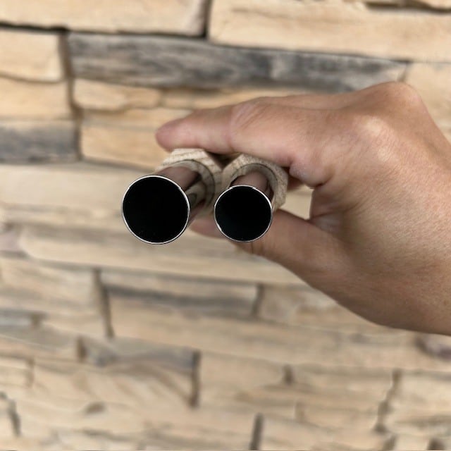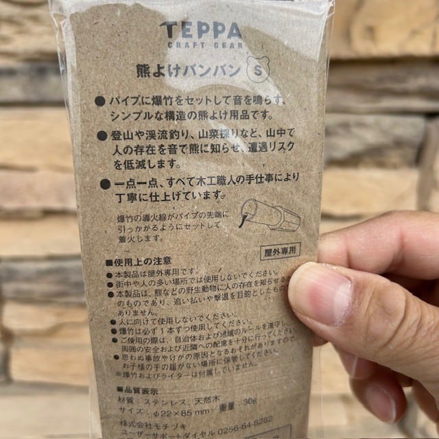 熊よけバンバンは、木製グリップとステンレス製の筒で構成された、