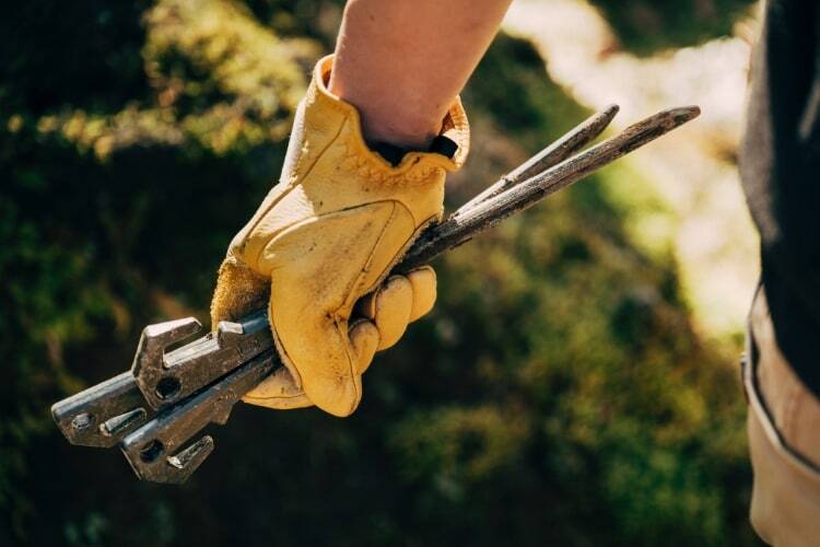 ペグ打ち作業時に誤って引っ掛け部先端が手に当たらないよう、安全ガードがついています。ガードは、ロープの掛け外しがし易いよう、打ち込み深さを抑制する役割も果たしています。
