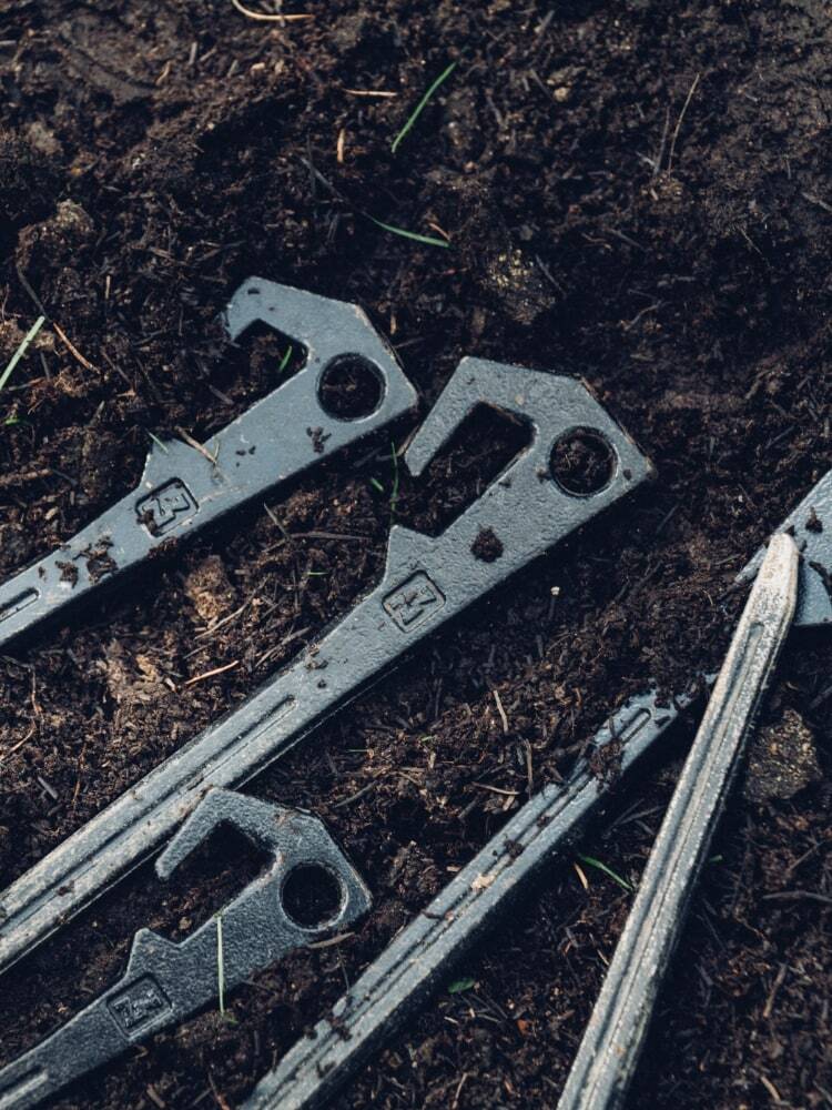 クサビ型で、刺せば刺すほど地面に密着する構造ですが、フラットデザインなので、少しひねるだけで隙間が大きく生まれスッと引き抜ける、固定力と抜き易さを両立したペグです。