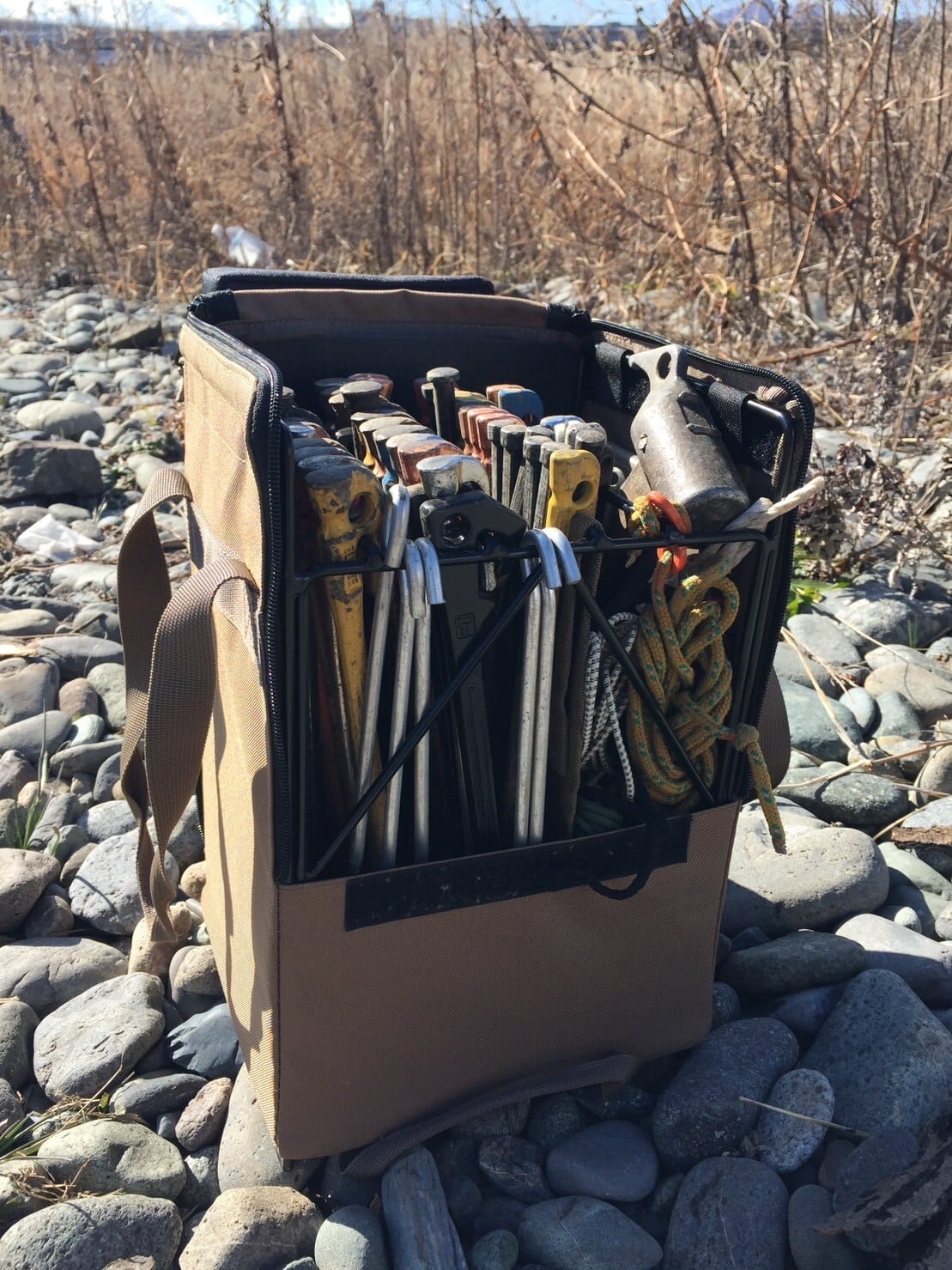 画像は、グラートステイク28が32本、グラートステイク18が20本入っています。テントやタープなど複数設営するシチュエーションでも、充分対応できる本数を収納可能です。
