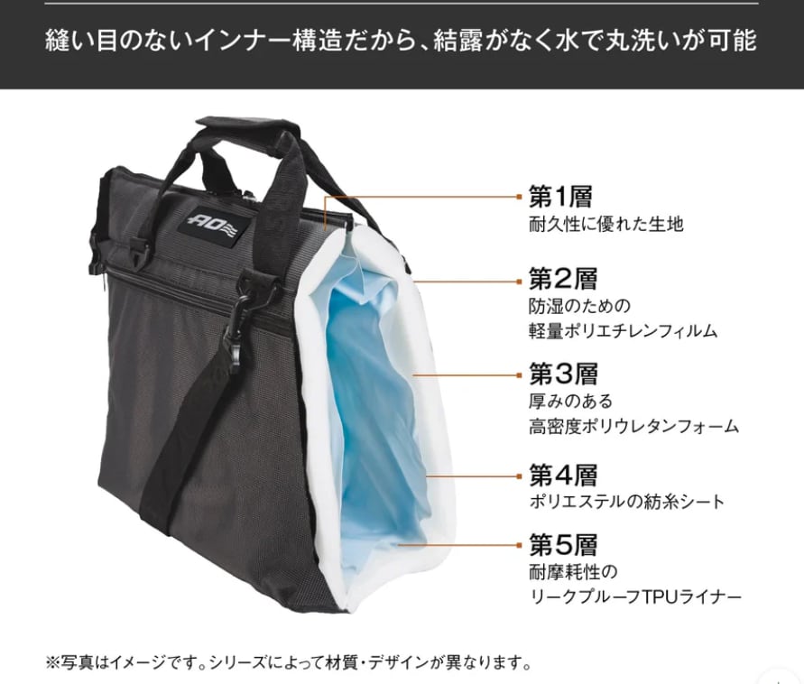 ●素材の組み合わせにより、サイズによって氷なら外気温49℃の中で約24時間維持出来るほど、驚異の保冷力を発揮。