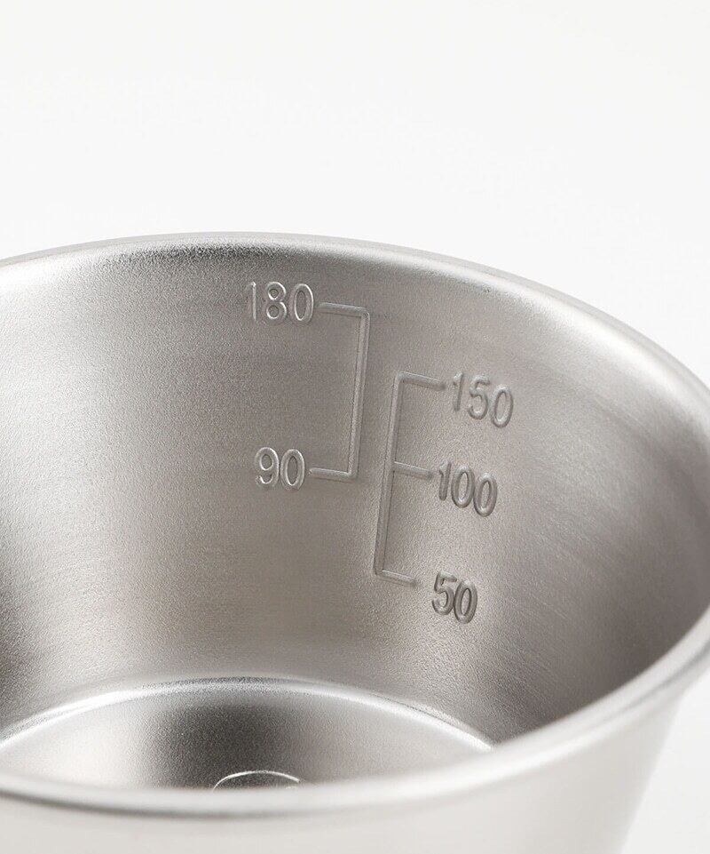 サビに強いステンレス製のシェラカップ。コップや食器としてはもちろん、直火にかけれらるので調理器具としても使用でき、アウトドアシーンで幅広く活躍。定番サイズ(320ml)よりも一回り小さい210mlサイズは、コーヒー用としてや登山用としてもおすすめ。
