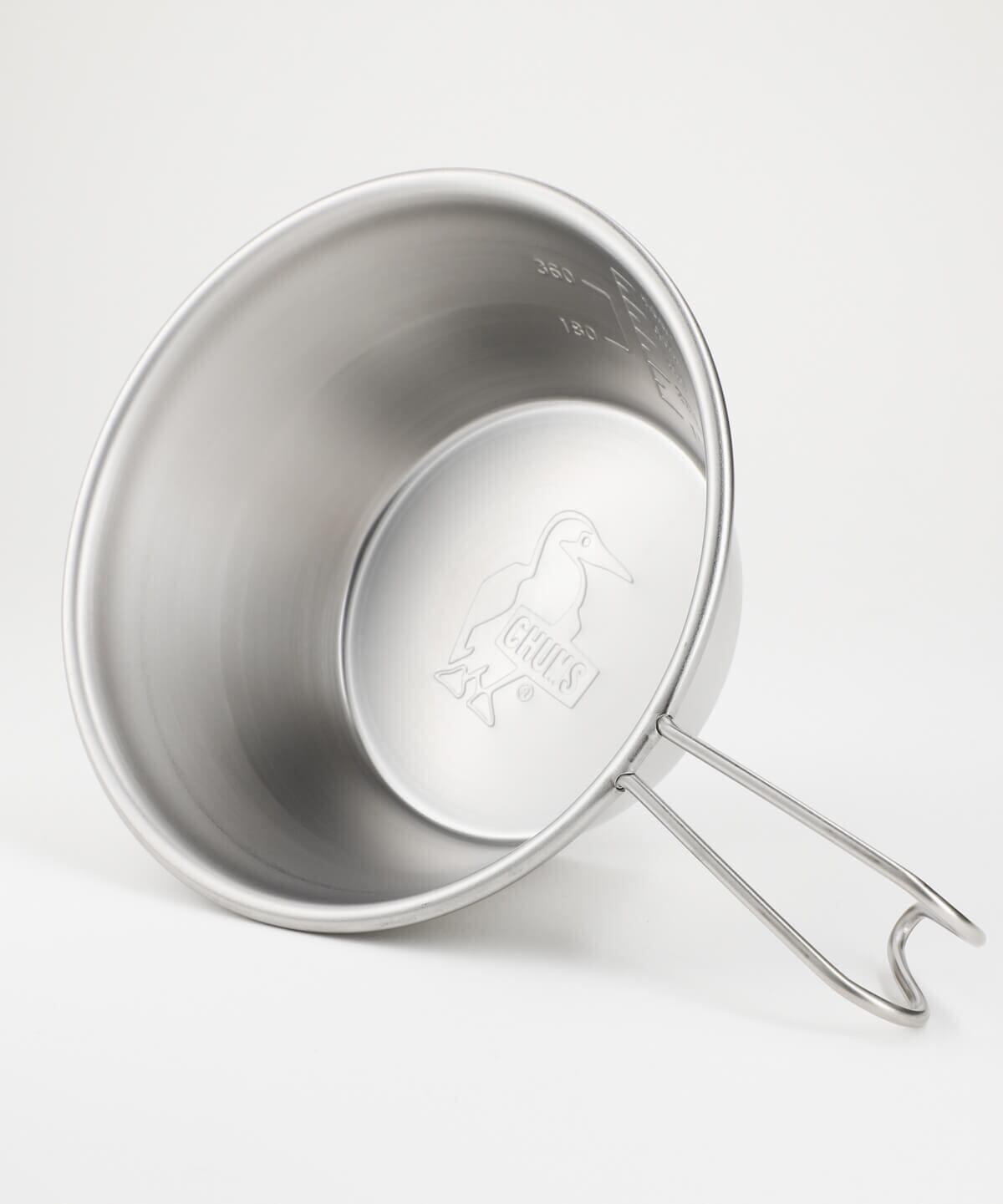 サビに強いステンレス製のシェラカップ。コップや食器としてはもちろん、直火にかけれらるので調理器具としても使用でき、アウトドアシーンで幅広く活躍。定番(320ml)よりも一回り大きい630mlサイズはインスタントラーメンを作って、そのまま器として食べるのにもちょうどいいサイズです。