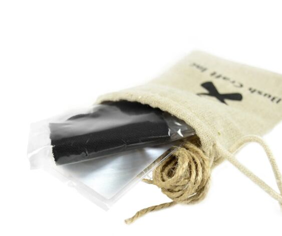 防水チャック袋に入った『ヘビーウェイトチャークロス』、レンズ、麻紐と、